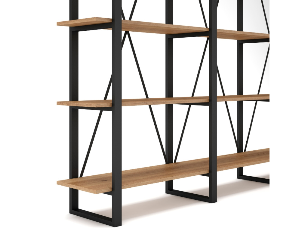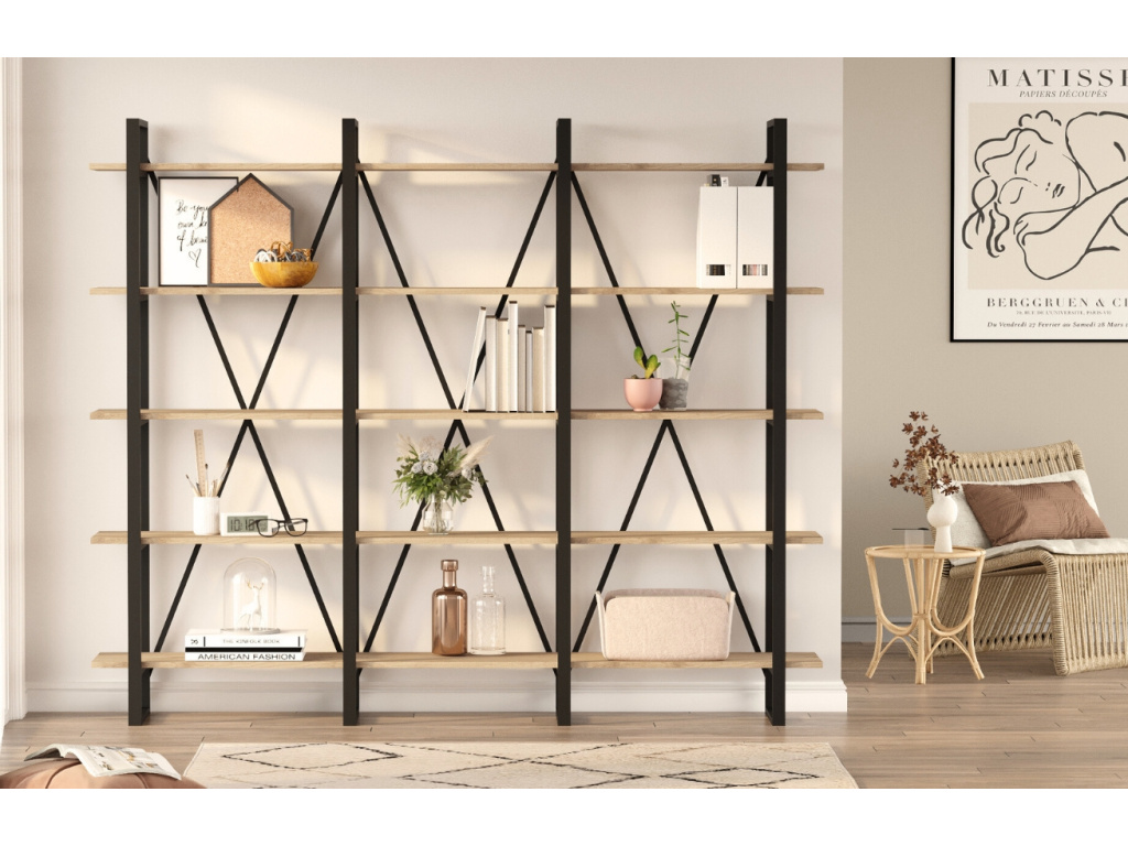 Regál Aviva od značky Marckeric upoutá industriálním vzhledem s precizní kombinací matně lakovaného kovu a melaminových polic v dekoru dřeva. Jeho robustní konstrukce a výrazné kovové prvky ve tvaru X dodávají interiéru osobitý charakter. Perfektně se hodí do obýváku, pracovny nebo loftového bytu jako otevřená knihovna či prostor pro dekorace. V nabídce je ve dvou velikostech, takže si snadno zvolíte tu pravou podle svých prostorových možností.