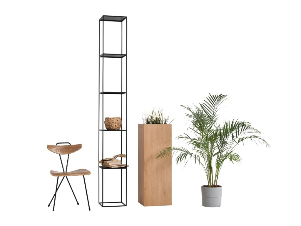 Elegantní regál Moreno zaujme svým minimalistickým vzhledem. Celokovové zpracování v černé barvě dodává regálu patřičnou stabilitu a osobitý industriální styl. Díky policím můžete do regálu libovolně umístit květinu či cokoliv jiného a vytvořit tak designový prvek ve vašem interiéru. Regál se skvěle hodí do moderních interiérů.