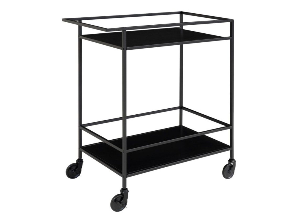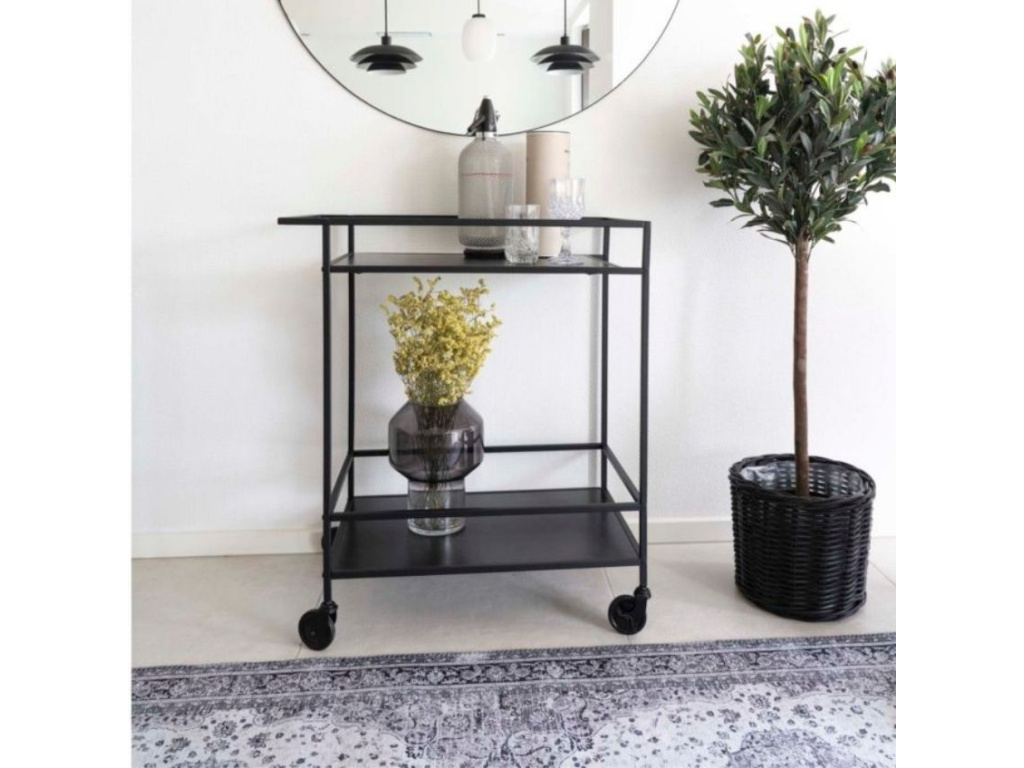 Univerzální černý odkládací vozík Winter zaujme svým jednoduchým průmyslovým vzhledem. Vozík má víceúčelové využití jako barový stolek při oslavě, servírovací vozík nebo jen prostor pro dekorace a květiny. Příjemným bonusem jsou kovová kolečka, díky nimž lze vozík snadno přemisťovat. Své místo najde v moderním prostředí.