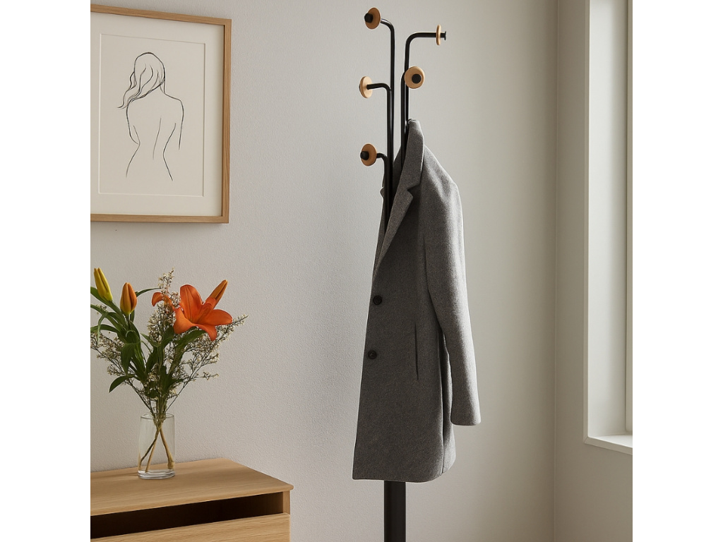 LEO je víc než jen věšák – je to tichý designový akcent, který propojuje estetiku s funkční lehkostí. Jeho štíhlá, čistá silueta a promyšlené proporce z něj dělají ideálního společníka do vstupních hal, kanceláří i veřejných prostor. Stabilní kovová základna v kontrastu s jemně zaoblenými dřevěnými háčky vytváří vizuální harmonii, která nikdy nepůsobí rušivě. Věšák Leo je důkazem toho, že i technický prvek může působit přirozeně a s elegancí zapadnout do každodenního prostředí.
