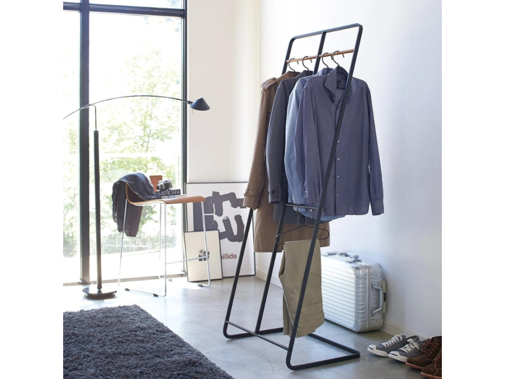 Černý kovový stojací věšák Yamazaki Tower 163 cm