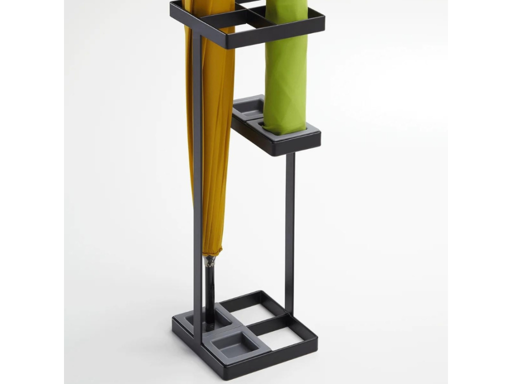 Stojan na deštníky Tower od značky Yamazaki je ideálním řešením pro každého, kdo hledá stylový a praktický způsob, jak udržet svůj vstupní prostor čistý a organizovaný. Tower je vyrobený z černě lakovaného kovu a je doplněn o plastové odkapávací misky, které chrání podlahu před vodou z mokrých deštníků a snadno se čistí. Stojan je navržen pro uložení až 4 deštníků, ať už dlouhých nebo krátkých. Díky svému minimalistickému designu se Tower stane elegantním doplňkem vaší předsíně nebo vstupního prostoru.