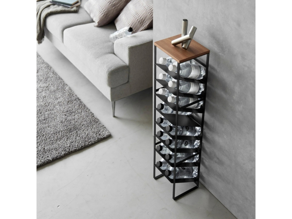 Stojan na láhve Yamazaki Tower je všestranný designový kousek, který využijete nejen na víno, ale i na vodu, oleje, octy nebo třeba limonády. Osm pater poskytuje velkorysý úložný prostor, zatímco horní dřevěná deska s přírodní dýhou nabízí praktickou plochu na dekorace, sklenky nebo drobnosti. Spodní dvě police jsou navrženy tak, aby pojmuly i větší láhve. Díky elegantnímu minimalistickému designu zapadne tento stojan do kuchyně, jídelny i obývacího pokoje a pomůže vám udržet prostor přehledný a stylově uspořádaný. Vybírat u nás můžete ze dvou variant – stojan je dostupný v bílé i černé barvě.