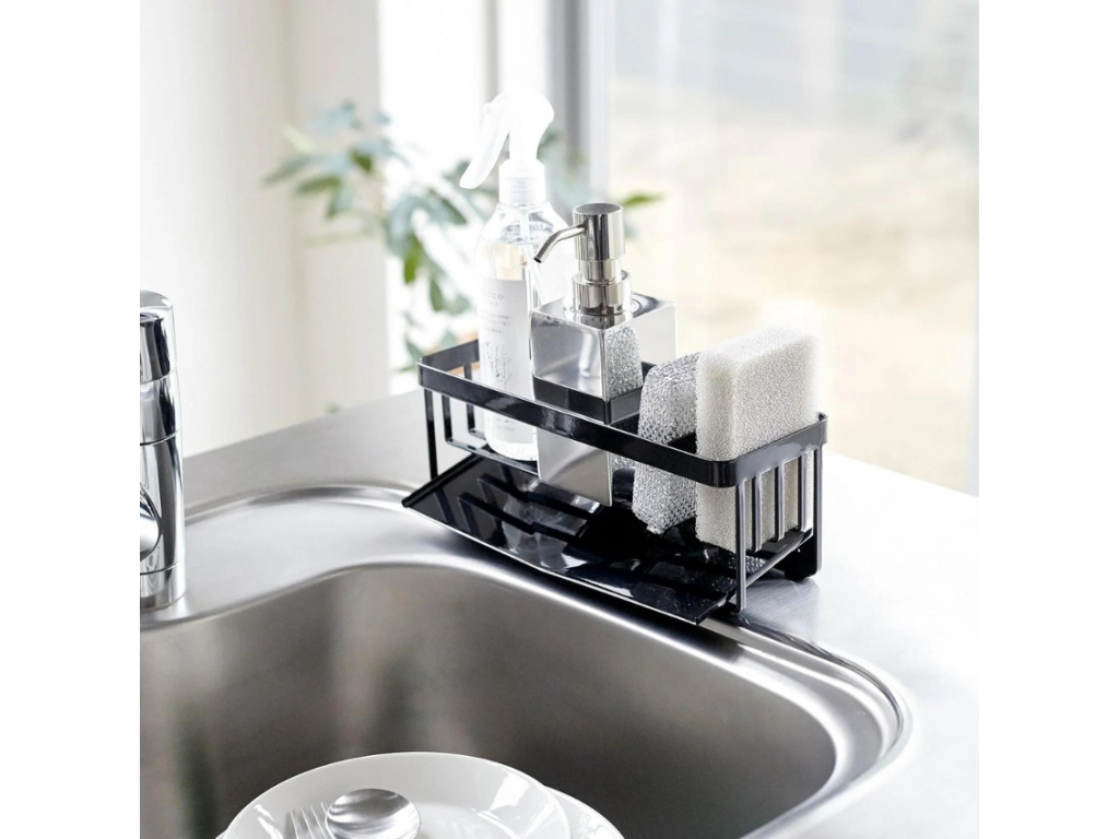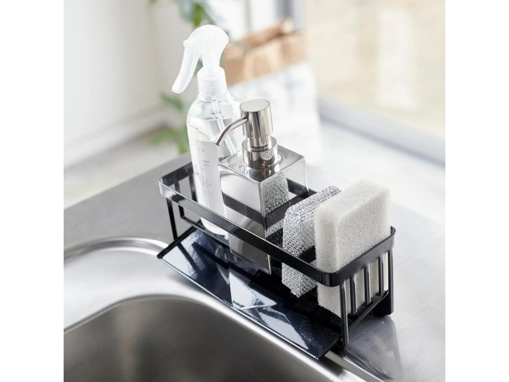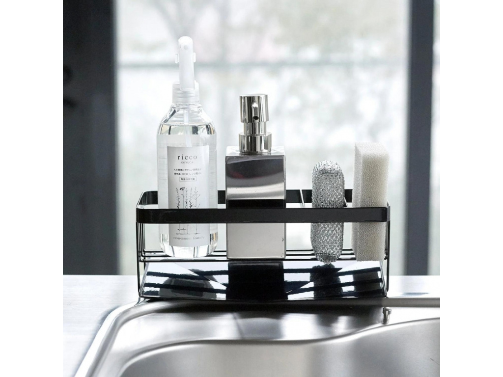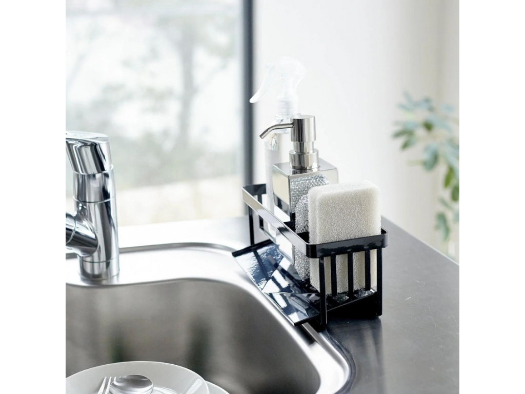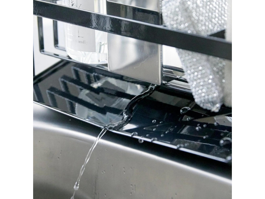 Stojan na mycí prostředky Tower je ideálním řešením pro udržení pořádku a čistoty ve vaší kuchyni. Tower je vyroben z černě lakovaného kovu, což zaručuje jeho odolnost a dlouhou životnost. Stojan je určen k umístění ke dřezu, aby bylo zajištěno pohodlné ukládání mycích prostředků jako jsou houbičky, kartáče, a saponáty. Speciální konstrukce umožňuje, aby odkapaná voda byla odváděna přímo do dřezu, čímž se udržuje pracovní plocha suchá a čistá.