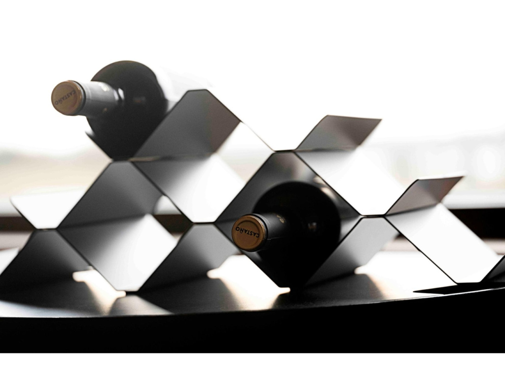 Představujeme elegantní stojan na víno z kolekce Rocks od značky Zone Denmark, navržený designérským studiem VE2. Tento stylový a stabilní stojan pojme až 9 lahví vína a jeho modulární pyramidová konstrukce umožňuje, při dokoupení druhého kusu, snadné přidávání úrovní. Je vyroben z kvalitní oceli s černým práškovým nástřikem, což z něj činí designový doplněk, který snadno zakomponujete do vašeho obývacího pokoje nebo kuchyně. Spojte funkčnost s estetikou a vystavte svou sbírku vín s tímto designovým kouskem, který získal prestižní ocenění Red Dot Design Award 2020!