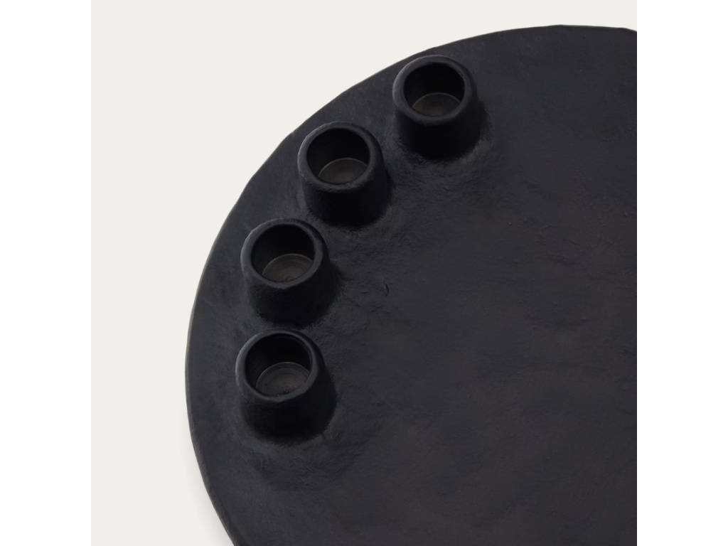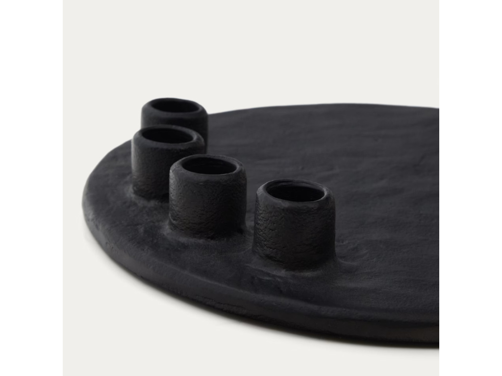 Udělejte si radost novou dekorací v podobě stylového svícnu Kave Home Nuvro! Je vyrobený z černého hliníku a umístit do něj můžete až 4 svíčky o průměru 2 cm. Ozdobte jím prostřený stůl, konferenční stolek nebo komodu v předsíni – skvěle se hodí především do industriálních a minimalistických prostor. Doplnit ho můžete dalšími kousky ze série Nuvro.