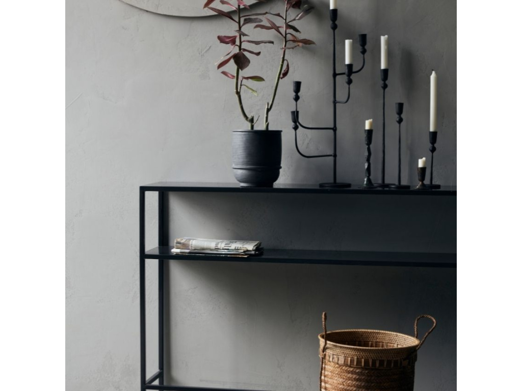 Jednoduchost a čistota designu černého toaletního stolku Fari nadchne nejednoho obdivovatele moderního minimalismu. Stolek je vyroben z kovu a nabízí praktickou otevřenou polici, kterou jistě oceníte. Nábytek z řady Fari skvěle doplní zejména moderní a industriálně interiéry.