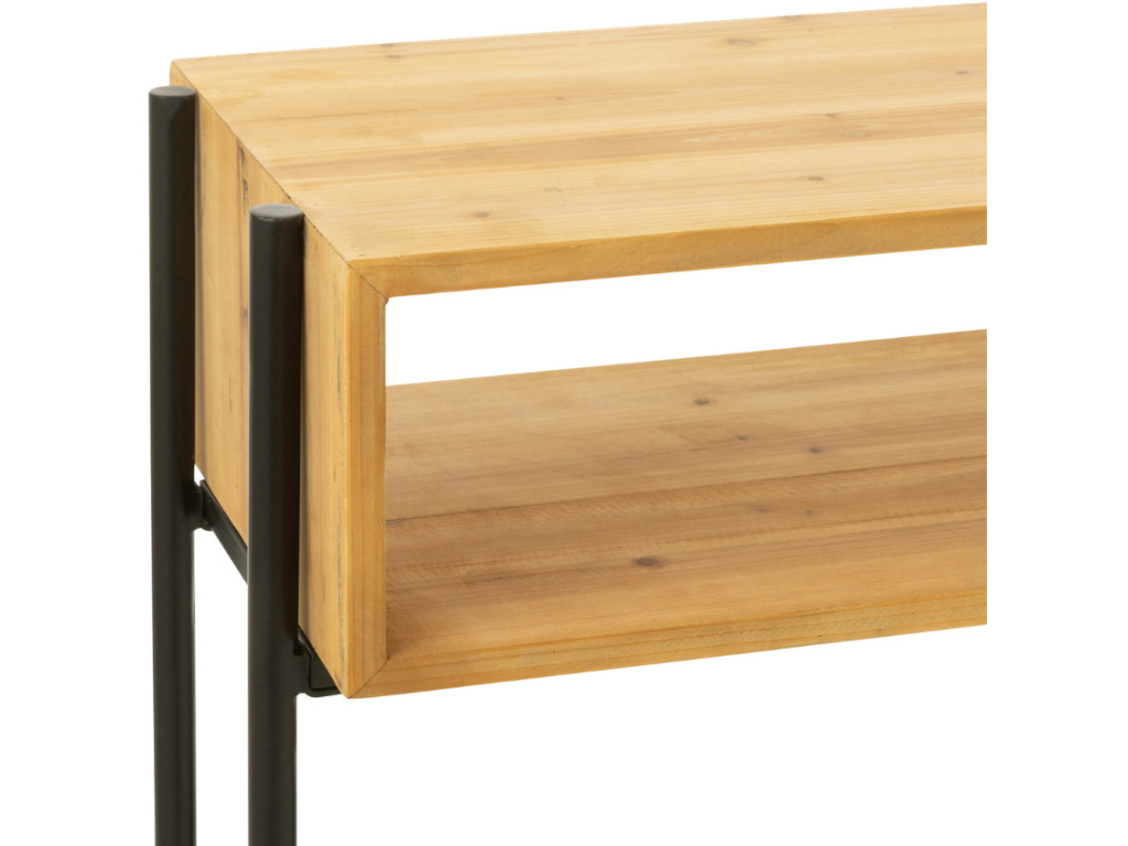 Představujeme vám toaletní stolek Tobleu od značky J-line. Zaujme především tím, že k jeho výrobě bylo použito jedlové dřevo a černý práškovaný kov, díky tomu bude do interiéru vrhat líbivý kontrast, který vznikne právě kombinací těchto dvou materiálů. Nabízí celkem 4 police pro umístění vašeho inventáře, ať už se jedná o dekorace, knihy nebo elektroniku při umístění do obývacího pokoje, o oblečení a boty při umístění do předsíně, nebo ložní prádlo při umístění do ložnice. Lze ho využít také jako praktický TV stolek – na horní polici umístíte televizi a do dolních polic například DVD přehrávač, herní konzoli nebo gramofon. Doporučujeme stolek nakombinovat s dalšími produkty z řady Tobleu, které také naleznete na našem webu.