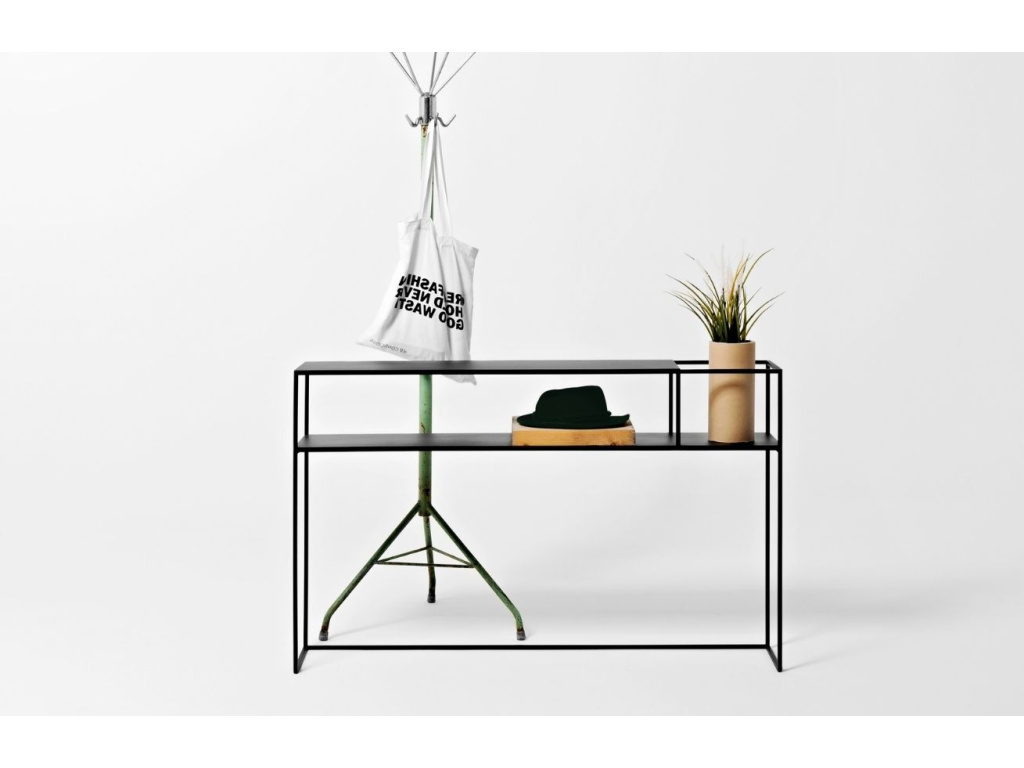 Elegantní toaletní stolek Moreno zaujme svým minimalistickým vzhledem. Celokovové zpracování v černé barvě dodává stolku patřičnou stabilitu a osobitý industriální styl. Díky průřezu můžete do stolku libovolně umístit květinu či cokoliv jiného a vytvořit tak designový prvek ve vašem interiéru. Dalším bonusem je praktická police, kam hravě uložíte váš drobný inventář. Stolek se skvěle hodí do moderních interiérů.