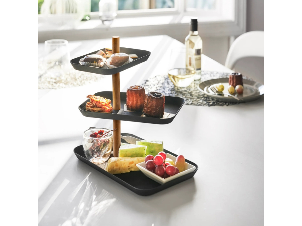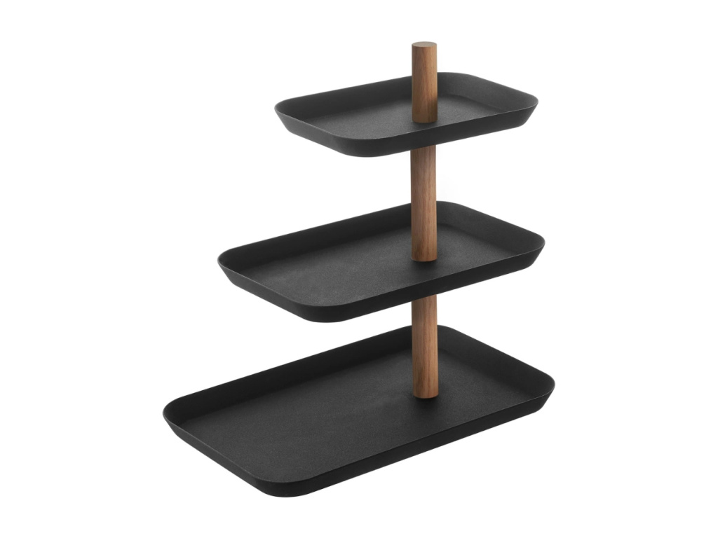 Podnos Rin od japonské značky Yamazaki je víc než jen praktický pomocník – je to designový kousek, který zaujme na první pohled. Tři ladně otočné misky s jemným dřevěným detailem vám otevřou svět stylového servírování i přehledného ukládání drobností. Rin nabízí stylový prostor pro servírování tapas, dezertů nebo sladkostí, ale stejně skvěle poslouží i jako organizér na šperky, hodinky, brýle nebo kancelářské drobnosti. Každá miska se otáčí o 360°, takže si snadno uspořádáte své drobnosti a vždy k nim máte pohodlný přístup. Jeho nadčasový design propojuje funkčnost s elegancí a jemným japonským minimalismem, díky kterému se stane nejen praktickým, ale i krásným doplňkem vašeho interiéru. S Rinem vystavíte své poklady nebo pohoštění tak, aby opravdu vynikly – jednoduše a s grácií.