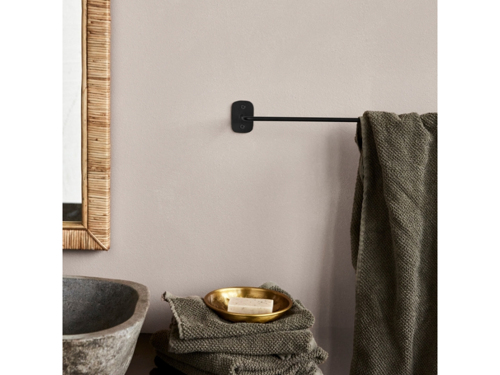 Stylový věšák na ručníky Pati od House Doctor bude jednoduchým minimalistickým prvkem do vaší koupelny. Je vyrobený z nerezové oceli a nadčasová černá barva dodá prostoru nádech elegance. Výhodou tohoto věšáku je, že ho na zeď můžete připevnit svisle i vodorovně a to nejen do koupelny, ale skvěle poslouží i v předsíni nebo šatně na pověšení oblečení.