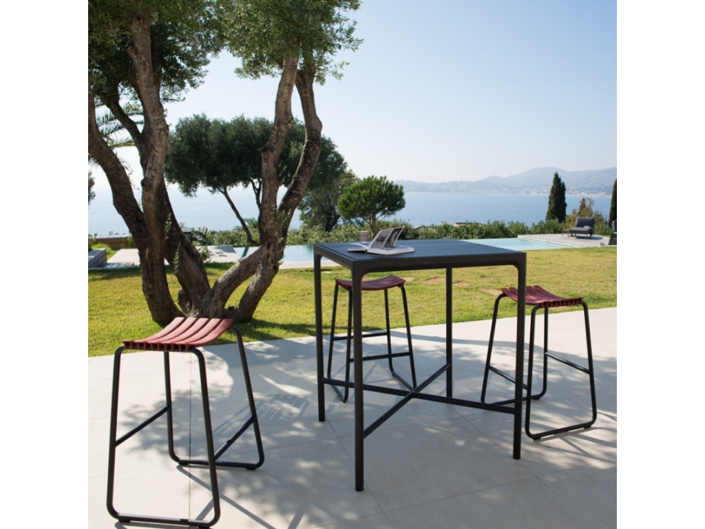 Přírodní barový stůl HOUE Four s deskou z hliníkových lamel a černě lakovanou podnoží je moderní, minimalisticky řešený stůl, který velmi dobře doplní interiéry s industriálními prvky i prvky moderního designu. Hledáte-li stylový jídelní stůl do menší kuchyně, na terasu nebo do veřejného prostoru vaší kavárny, restaurace či baru, je tento stůl výbornou volbou.