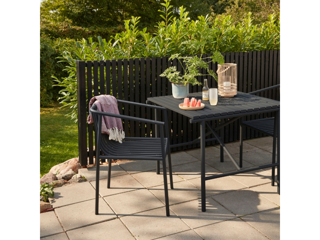 Černý kovový stůl Hübsch Villa nabízí decentní a moderní design. Kovová podnož a deska ze stejného materiálu zaručují pevnou a stabilní konstrukci. U stolu Hübsch Villa oceníte kromě jeho vysoké odolnosti také velmi snadnou údržbu. Skvěle doplní každou zahradu, terasu, stejně tak interiér. Dolaďte svůj prostor k dokonalosti a pořiďte si k němu i další designovky ze série Villa!