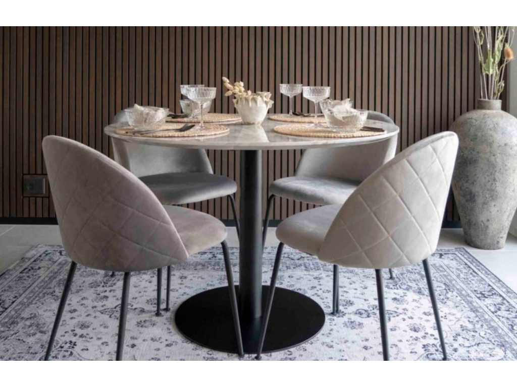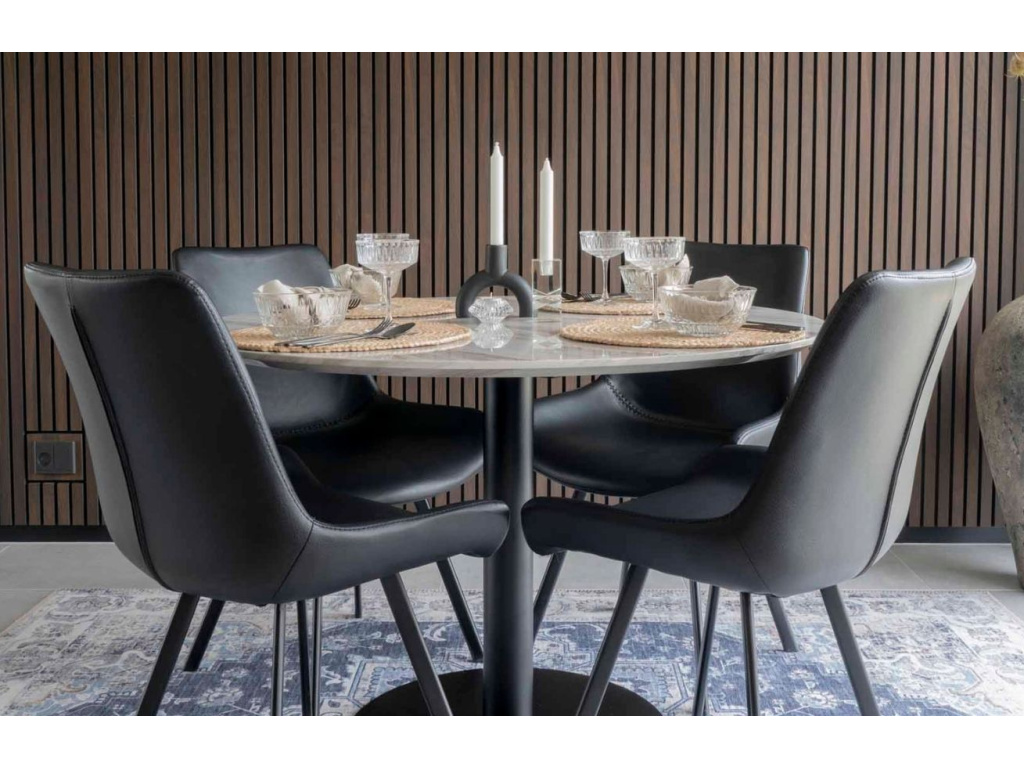 Kulatý jídelní stůl Ascona si jednoduše zamilujete. Deska vyrobená z MDF s mramorovým vzorem a společně s podnoží z černě lakovaného kovu vytváří designové spojení, které dodává celému stolu osobitost a styl. Díky této kombinaci se bude skvěle vyjímat zejména v moderních interiérech.