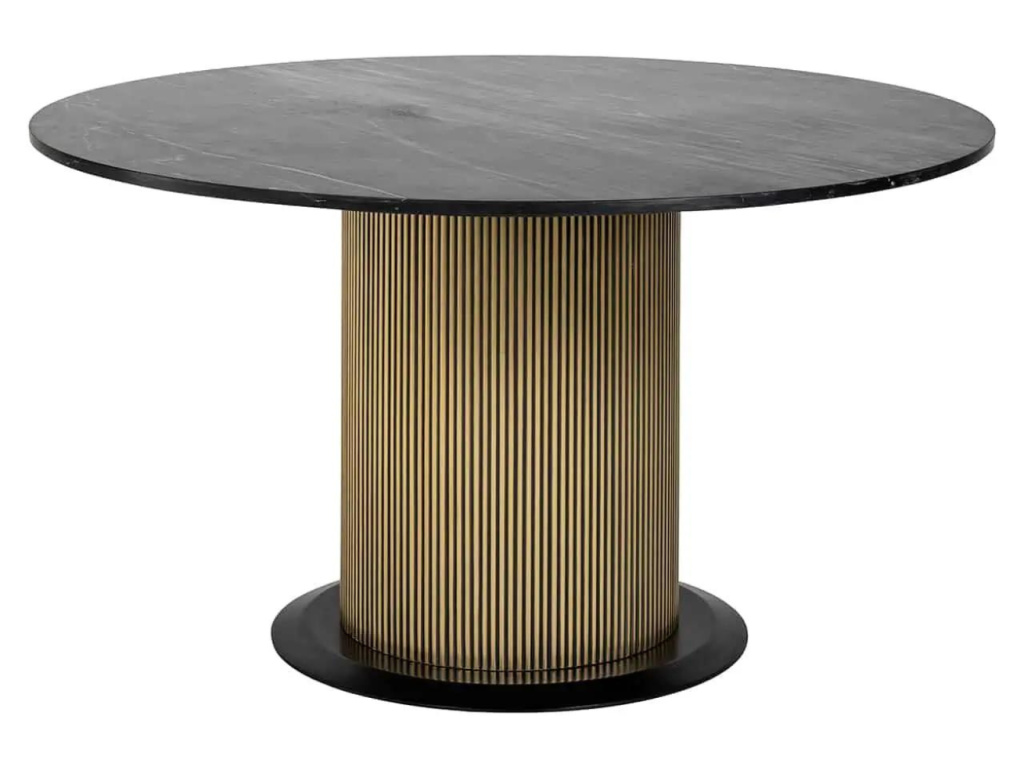 Ozdobte svůj jídelní kout stolem Ironville od značky Richmond. Tento luxusní jídelní stůl se pyšní krásnou drážkovanou mosaznou základnou, která je vyrobena z akátového dřeva, masivní mramorovou deskou a vynikající povrchovou úpravou. Stane se úchvatným středobodem každé moderní jídelny nebo kuchyně. Díky elegantní siluetě Ironville skvěle doplní moderní, minimalistické nebo glamour prostory. Stůl vychází ze stejnojmenné produktové řady, která je charakteristická svými mosaznými a mramorovými prvky.