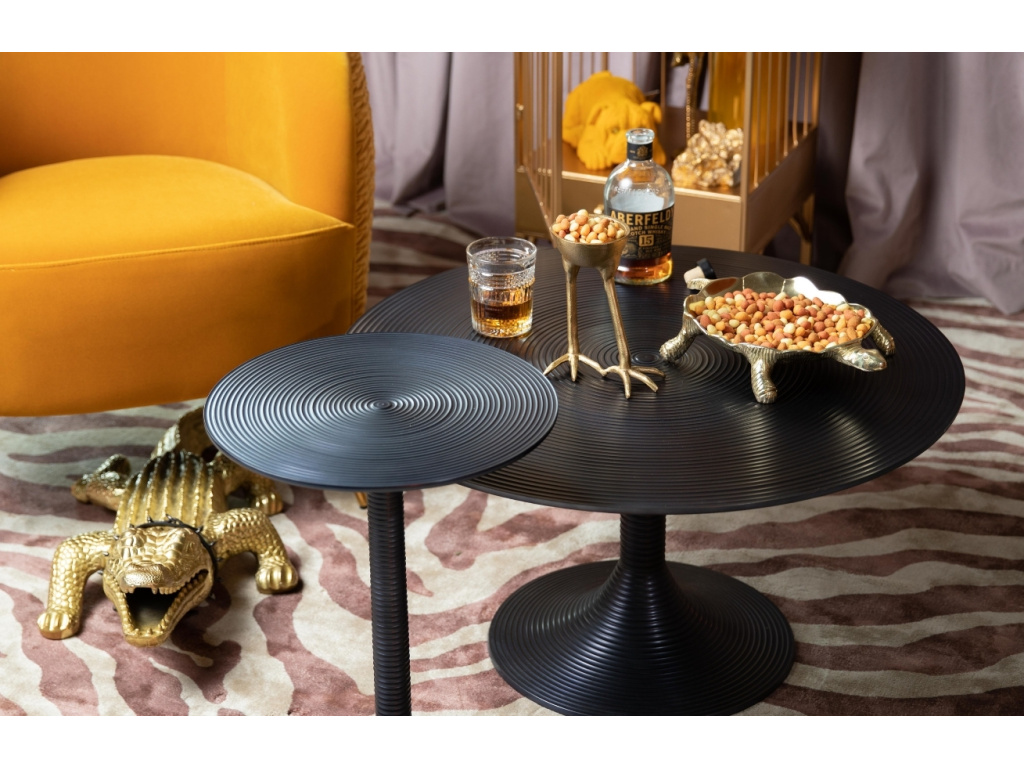 Celokovový kulatý odkládací stolek Hypnotising značky Bold Monkey se nechává inspirovat u nestárnoucího a stále velmi oblíbeného stylu art deco a přidává i některé prvky z orientálního umění. Tím je příjemné vroubkovaní, které je zároveň ústředním motivem celého designu. Díky těmto vlastnostem a elegantní černé barvě se stolek skvěle hodí do každého interiéru a zejména designového prostředí. Je určen pro každého, kdo hledá designově výrazný a zároveň odolný stůl.