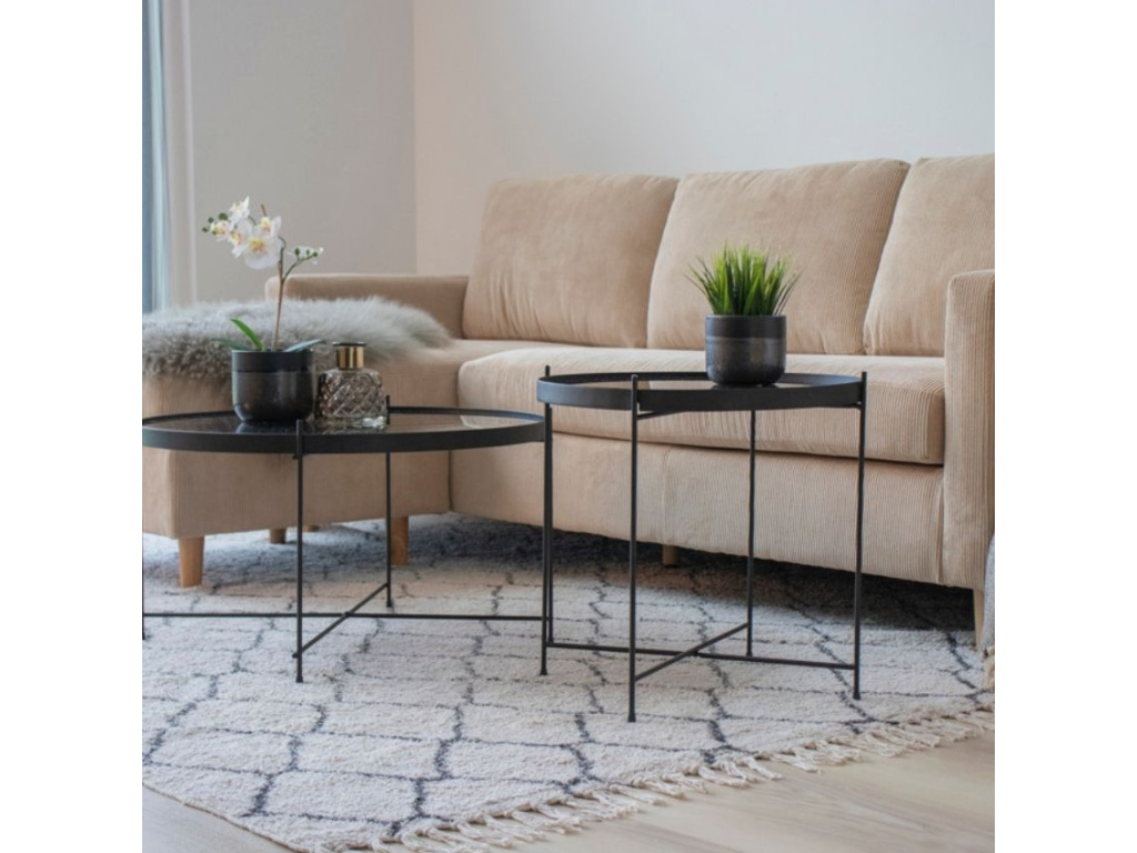 Moderní odkládací stolek Nordic Living Emeli zaujme svým jednoduchým designem. Kovová podnož a skleněná deska v černé barvě nadchne všechny nadšence minimalistických prvků. Praktickým bonusem je zaoblená deska, která zabrání případnému rozlití nápojů na váš oblíbený koberec či podlahu. Emeli krásně zapadne nejen do moderně laděných interiérů.