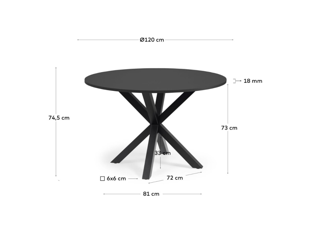 Krásný a nadčasový kulatý jídelní stůl Kave Home Argo vás na první pohled zaujme svým originálním a propracovaným designem. Podnož zajišťující perfektní stabilitu je vyrobena z černě lakované oceli a má zajímavý tvar připomínající hvězdu. Desku tvoří lakované MDF v černé barvě a skvěle se s podnoží doplňuje. Tento jídelní stůl se bude vyjímat zejména v moderních interiérech.