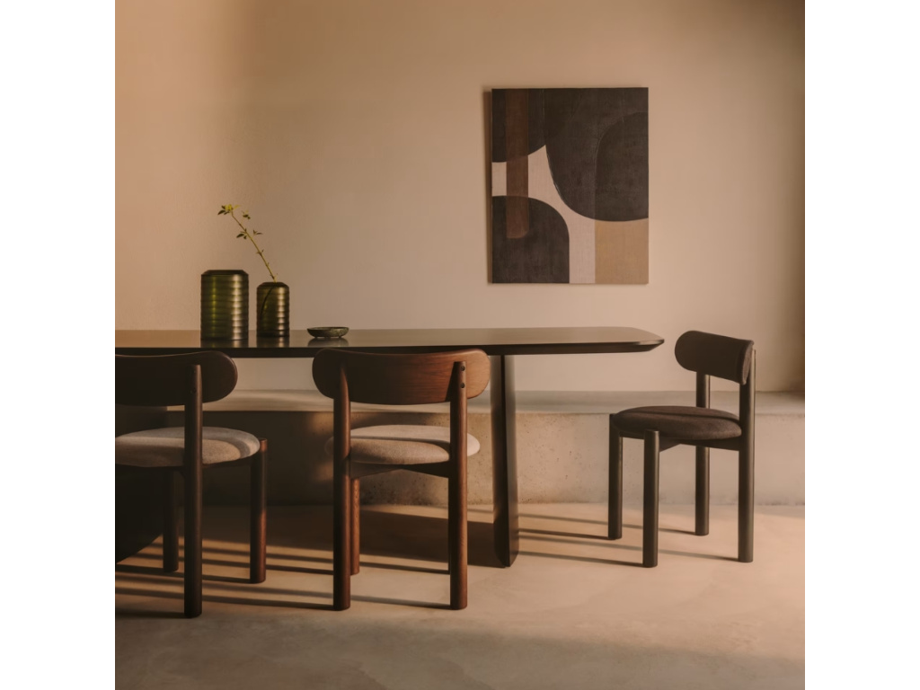 Jídelní stůl Kave Home Litto v sobě snoubí eleganci a odolnost. Pořídit si ho můžete také v dubovém nebo ořechovém provedení. Na jeho výrobu bylo použito černě lakované MDF, které je díky dvěma vrstvám barvy a PU vrchnímu nátěru velice odolně a snadno udržovatelné. Skvěle se hodí do minimalistických interiérů. Díky jeho prostorné desce si můžete vychutnat i početnější rodinné večeře pěkně v pohodlí.