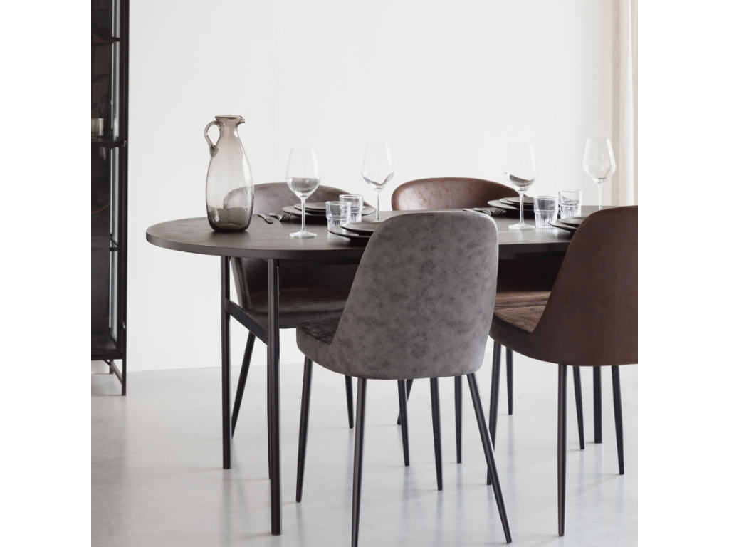 Hledáte-li stylový jídelní stůl do vaší jídelny či restaurace, představuje stůl MARCIO od značky White Label Living výbornou volbu. Oválná deska stolu je vyrobena z dýhovaného MDF a pyšní se přirozenou strukturou dřeva. Ta je doplněna o štíhlou kovovou podnož, která svými rovnými liniemi kontrastuje se zakulacenou deskou. Jídelní stůl umocňuje elegantní černá barva, díky které ho snadno zkombinujete s nábytkem v různých odstínech.