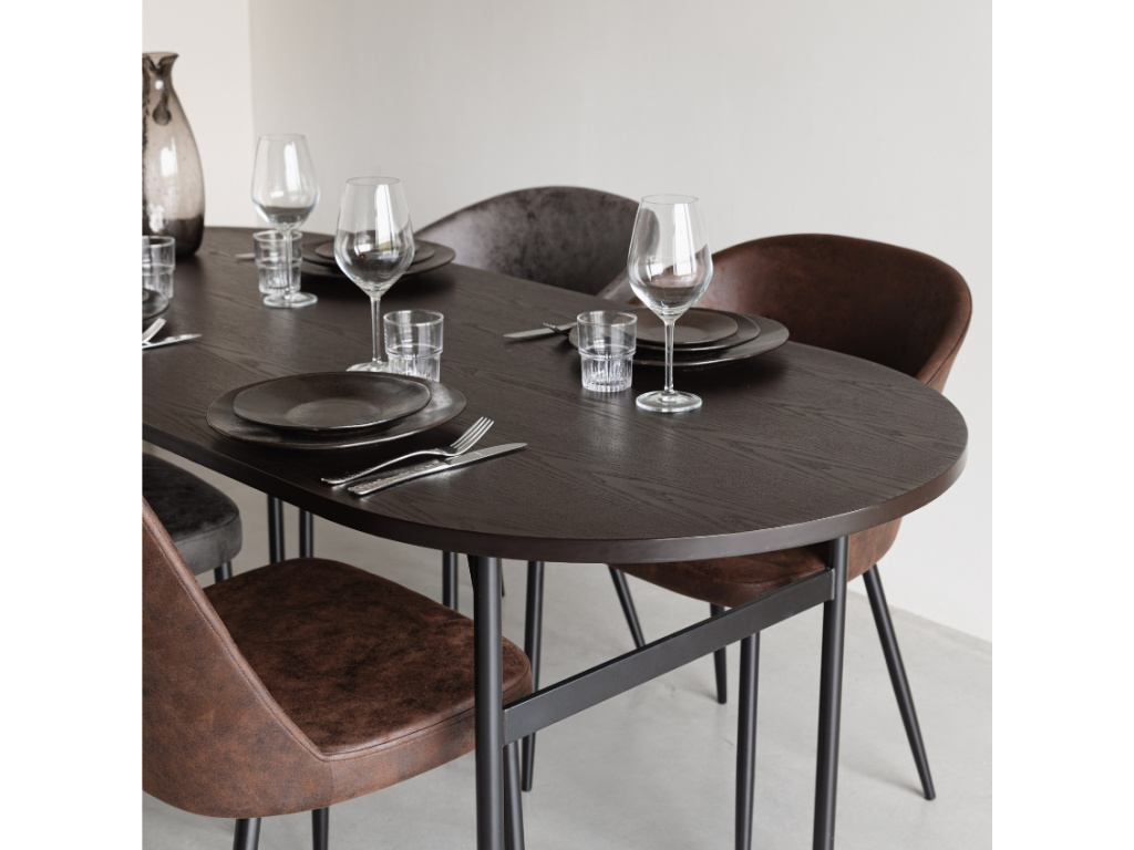 Hledáte-li stylový jídelní stůl do vaší jídelny či restaurace, představuje stůl MARCIO od značky White Label Living výbornou volbu. Oválná deska stolu je vyrobena z dýhovaného MDF a pyšní se přirozenou strukturou dřeva. Ta je doplněna o štíhlou kovovou podnož, která svými rovnými liniemi kontrastuje se zakulacenou deskou. Jídelní stůl umocňuje elegantní černá barva, díky které ho snadno zkombinujete s nábytkem v různých odstínech.