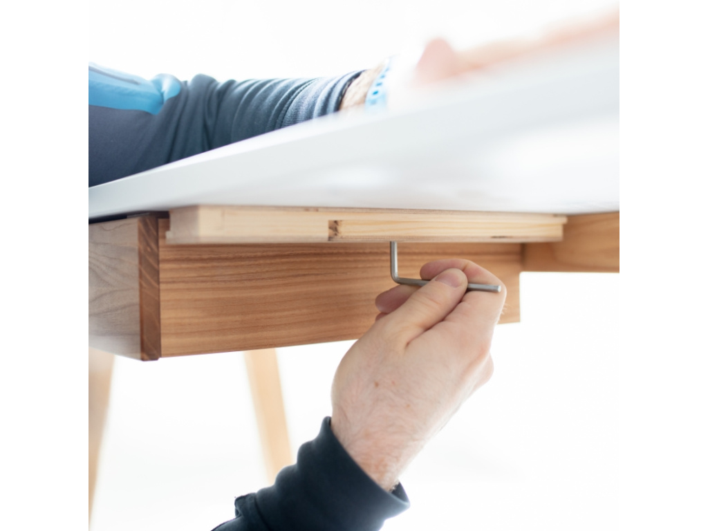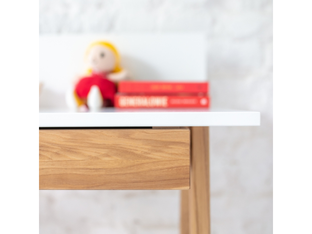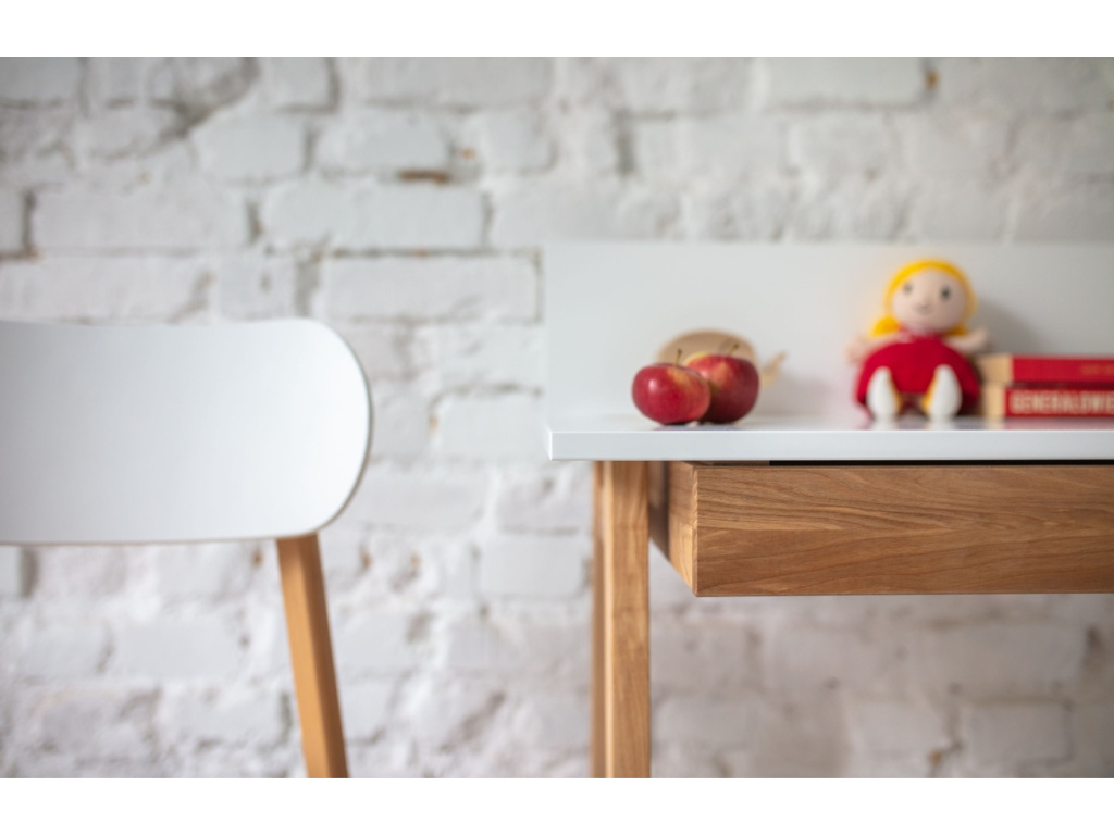 Hledáte-li minimalistický a zároveň funkční a elegantní stůl do vaší pracovny, je RAGABA LUKA právě pro vás. Stůl disponuje dvěma zásuvkami z jasanového masivu, které vám poskytnou praktické úložiště na potřebné věci. Pracovní deska je vybavena kulatým otvorem na kabely a odnímatelným zadním panelem, který poskytne plochu například pro lepící papírky či fotografie. Odpočinek pro unavené nohy nabídne příčná lišta, která je součástí podnože. LUKA bude perfektním designovým kouskem do vaší pracovny, využití najde také v dětském nebo studentském pokoji.