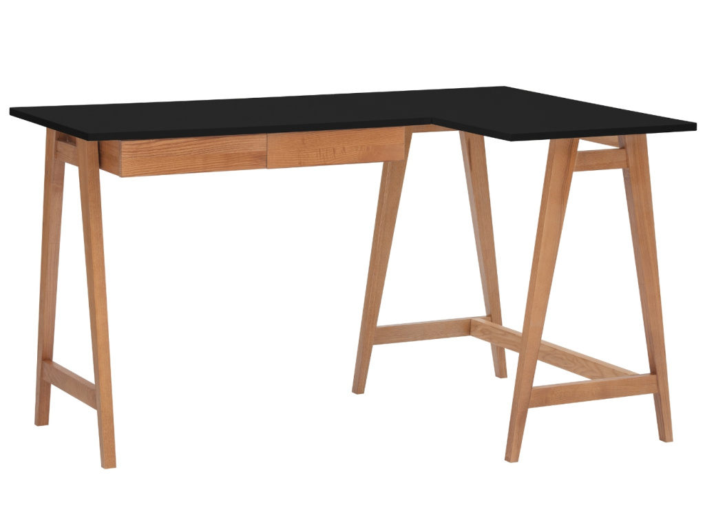 Více infoČerný lakovaný rohový pracovní stůl RAGABA LUKA 135 x 85 cm s dubovou podnoží, pravý