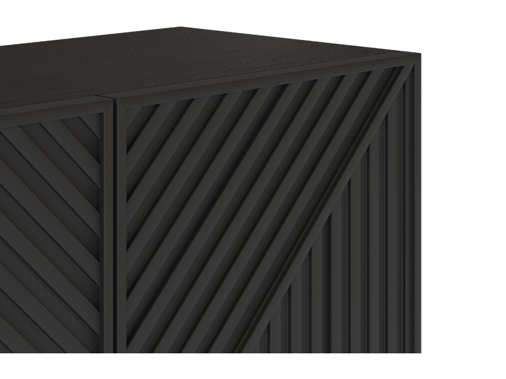 TV stolek Peta od značky Marckeric je designovým kouskem, který zaujme svými geometricky frézovanými dvířky a celkově výrazným charakterem. Černý lak na MDF deskách v kombinaci s kovovou podnoží vytváří moderní nábytek s industriálním nádechem. Za čtyřmi uzavíratelnými dvířky se ukrývají police, které nabídnou dostatek prostoru pro elegantní uschování všeho, co nemá být vidět. V kolekci Peta najdete kromě TV stolku také dvě varianty komod, které společně vytvoří charakter nápaditého a výrazného interiéru.