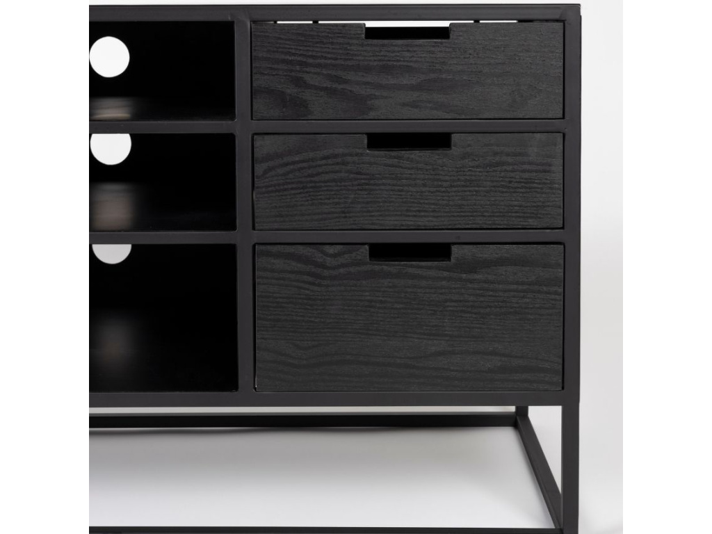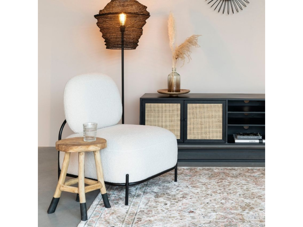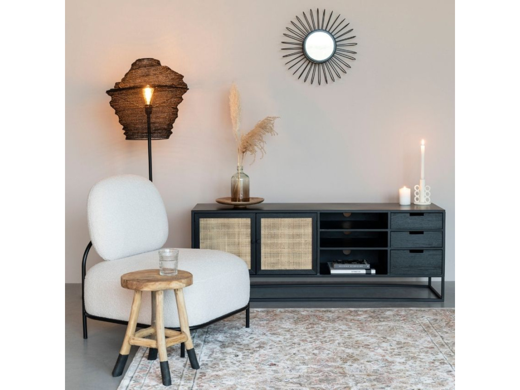Pokud jste příznivci přírodních prvků v interiéru, pak se vám TV stolek GUUJI značky WHITE LABEL LIVING jistě zalíbí. Stolek disponuje skříňkou se dveřmi s ratanovou výplní. Jeho korpus je tvořen lakovanými MDF deskami a doplňuje ho štíhlá podnož z lakovaného kovu. Dveře stolku se zavírají pomocí magnetů a vedle nich najdete tři otevřené police a tři zásuvky. Za policemi jsou otvory na vyvedení kabelů, díky kterým bude zapojení DVD přehrávače a herních konzolí pohodlnější. Série GUUJI nabízí více designově sladěných produktů, které budou pohromadě vypadat skvěle.
