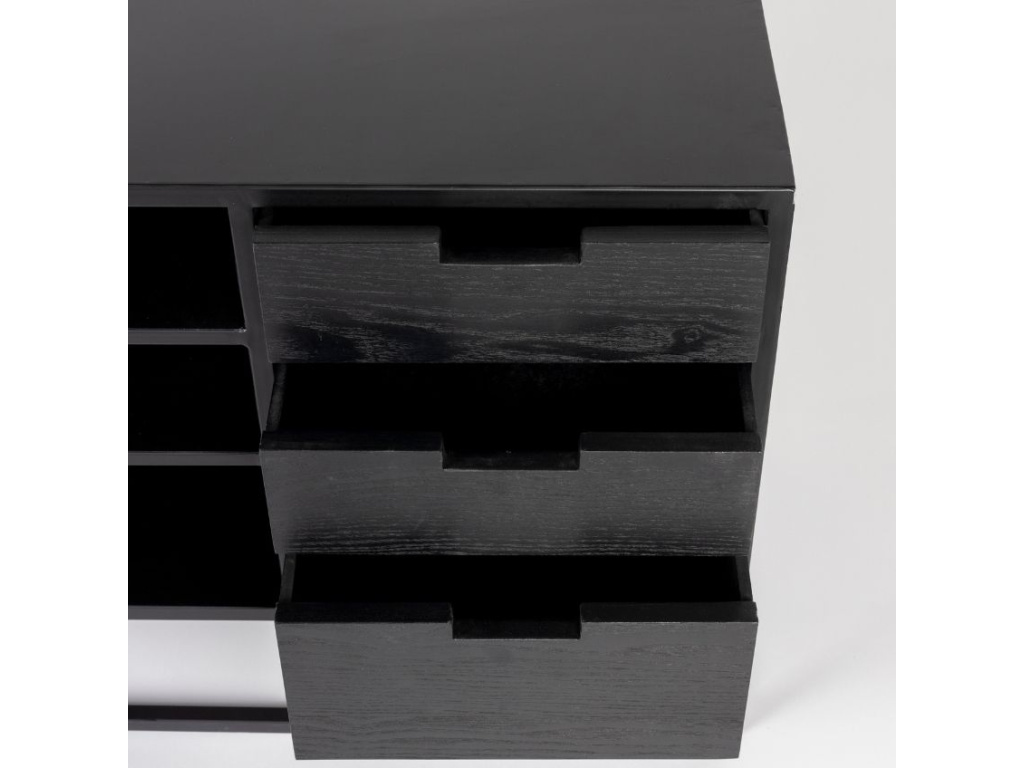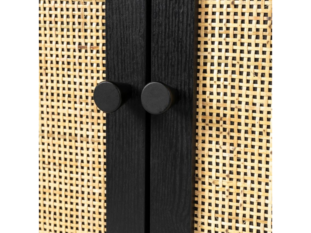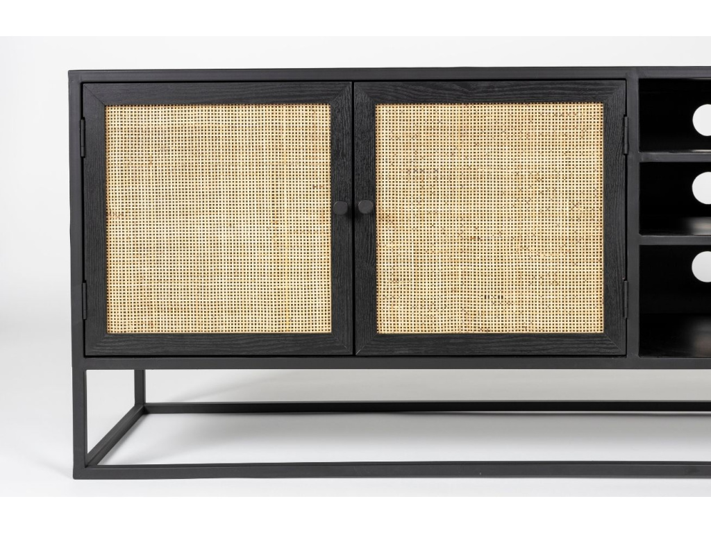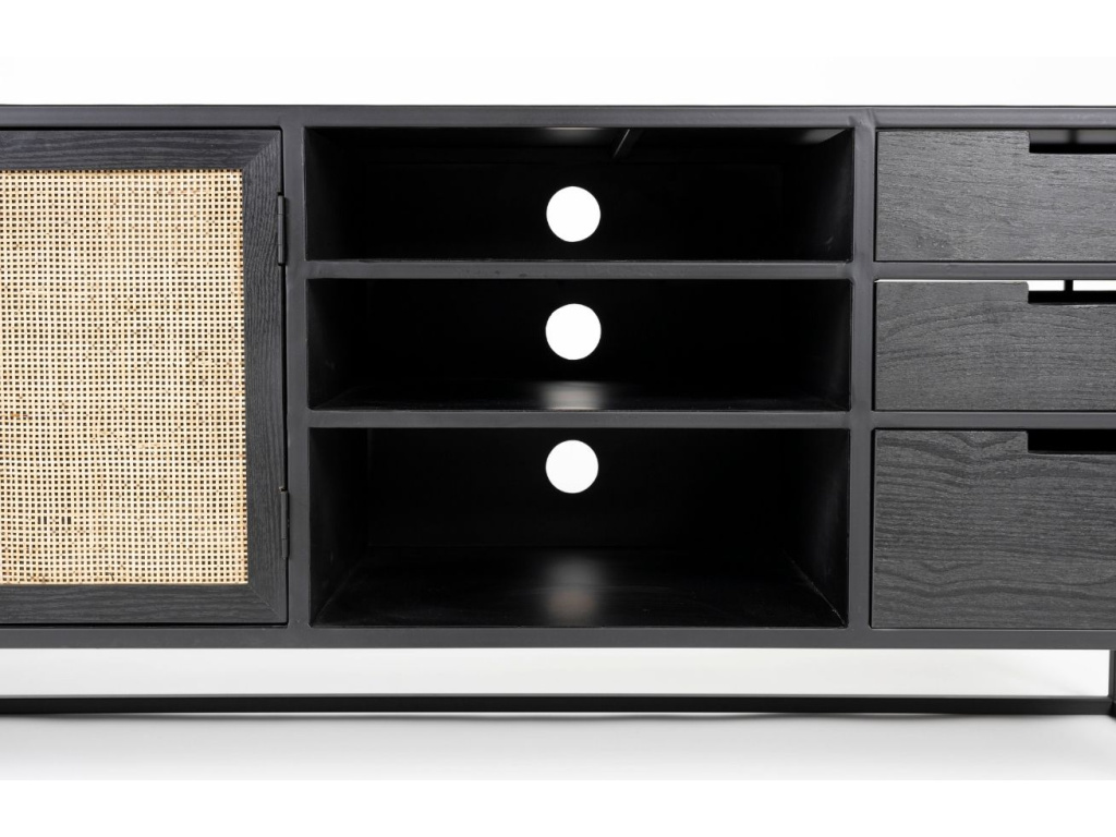 To chciČerný lakovaný TV stolek s ratanovou výplní WLL GUUJI 150 x 38 cm