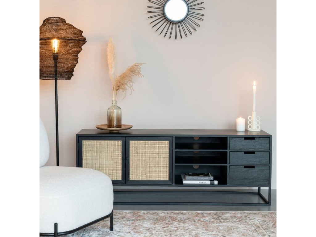 Více infoČerný lakovaný TV stolek s ratanovou výplní WLL GUUJI 150 x 38 cm