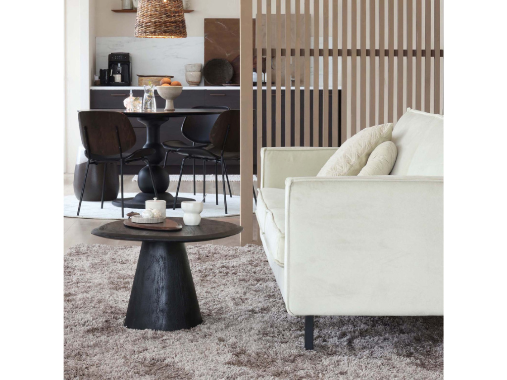 Hledáte skutečně designový kousek do vašeho domova? Skvělým tipem je tento menší černý konferenční stolek z řady Poselt, jehož hlavní předností je atypický, nepravidelný tvar a materiál – pevné mangové dřevo. Mangové dřevo představuje jistotu vysoké životnosti a odolnosti vůči poškození. Deska s příjemně zkoseným okrajem a kuželovitou podnoží je vhodným adeptem do moderního, čistého interiéru. Velmi se hodí k přírodně laděným prvkům. Řada Poselt nabízí tři různé velikosti a dvě barevná provedení.