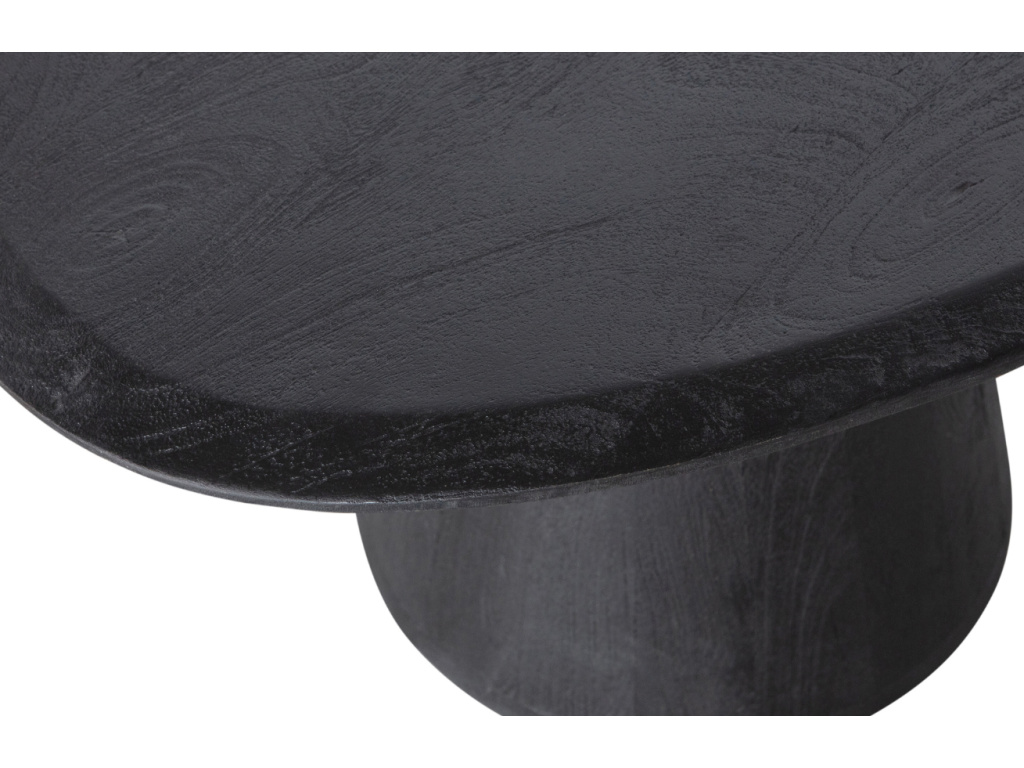 Hledáte skutečně designový kousek do vašeho domova? Skvělým tipem je tento menší černý konferenční stolek z řady Poselt, jehož hlavní předností je atypický, nepravidelný tvar a materiál – pevné mangové dřevo. Mangové dřevo představuje jistotu vysoké životnosti a odolnosti vůči poškození. Deska s příjemně zkoseným okrajem a kuželovitou podnoží je vhodným adeptem do moderního, čistého interiéru. Velmi se hodí k přírodně laděným prvkům. Řada Poselt nabízí tři různé velikosti a dvě barevná provedení.