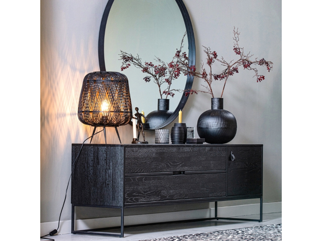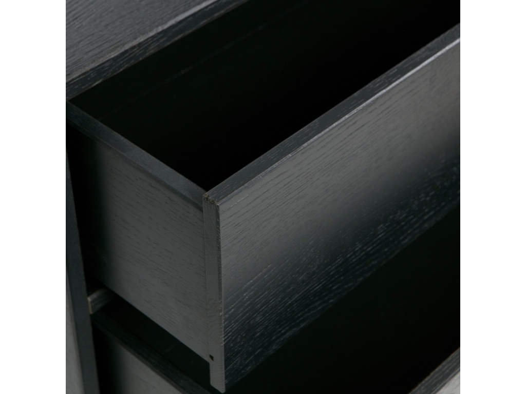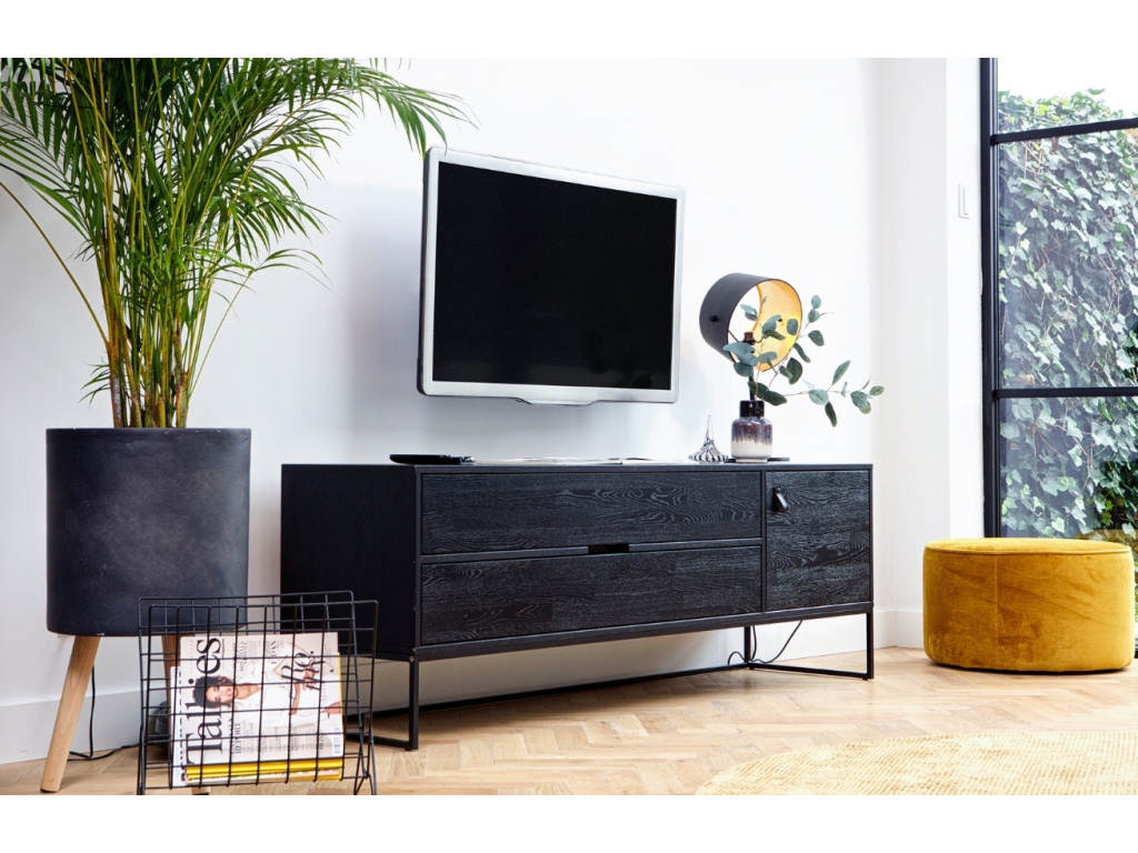 TV stolek Frax je osobitým kusem nábytku. Je vyrobený z černě lakovaného masivního jasanového dřeva a má lakovanou kovovou podnož stejné barvy. Výhodou je prostorný úložný prostor tvořený dvěma zásuvkami a skřínkou. Stolek lze využívat také jako menší komodu a oblíbí si jej všichni, kteří ocení jednoduchost a čistotu provedení a také použití materiálů, které jsou zárukou vysoké kvality. Minimalismus a praktičnost TV stolku Frax bude nejlépe vynikat v jednoduše a vzdušně zařízeném interiéru, kterému dodá stylovost a nadčasovost.