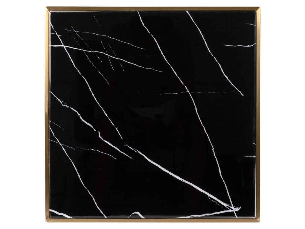 Bistro stolek Zenza od Richmond Interiors přináší do interiéru moderní eleganci s luxusním nádechem. Čtvercová stolová deska v černém provedení s jemným mramorovým efektem je orámovaná zlatým lemem, který krásně kontrastuje s robustní černou kovovou podnoží. Stabilní kulatá základna dodává stolku pevnost a zároveň působí minimalisticky. Díky svým rozměrům je ideální volbou do menších prostor – od kavárenského posezení přes kuchyňský koutek až po moderní lounge. Tento stolek spojuje funkčnost s výrazným designem a stane se stylovým prvkem každého interiéru.