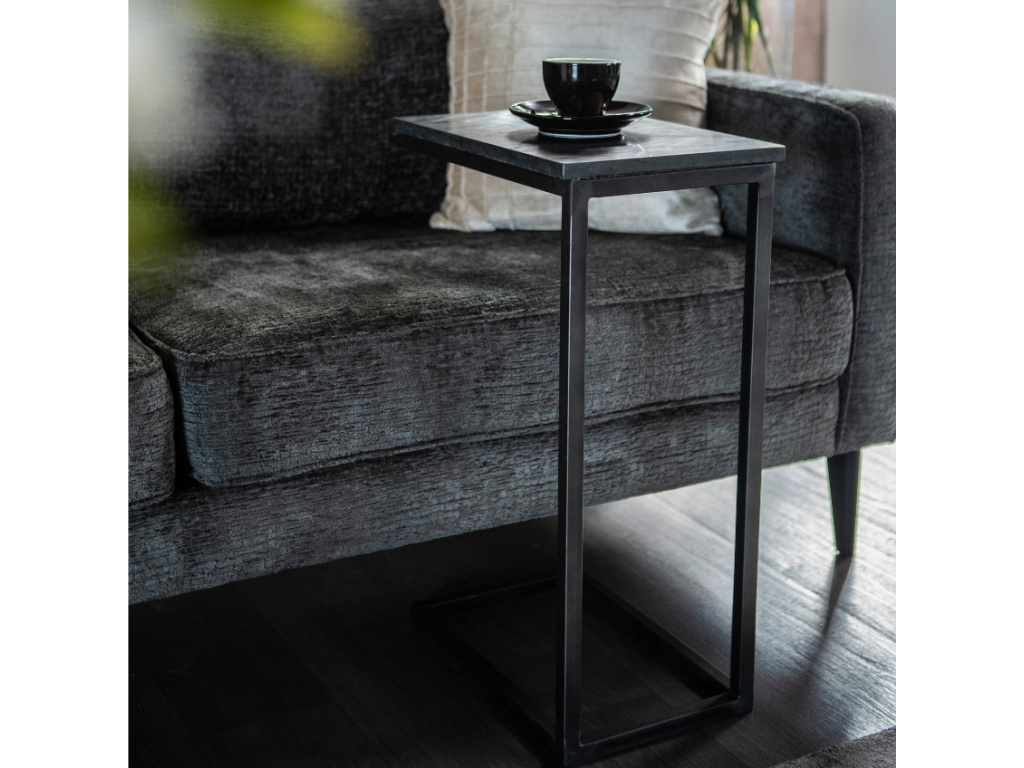 Stolek Edge se stane decentním, ale působivým prvkem vašeho obývacího pokoje. Deska z přírodního černého mramoru s jemnou kresbou působí luxusně a dodá prostoru šmrnc. Kovová podnož v černém provedení podtrhuje minimalistický design a je možné ji zasunout pod pohovku, čímž si přiblížíte desku blíže k sobě. Stolek snadno využijete na šálek kávy, knihu nebo malou vázu. Edge přinese harmonii mezi funkčností a elegancí, kterou si zamilujete.