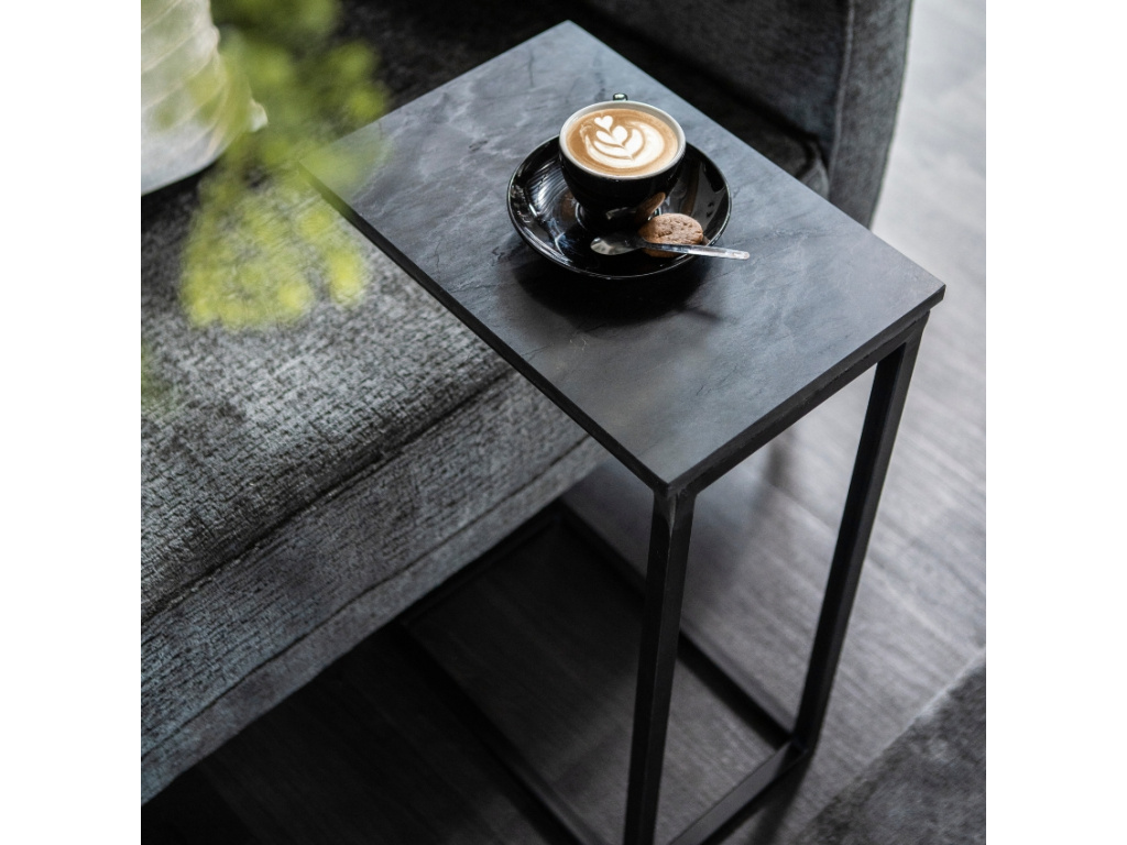 Stolek Edge se stane decentním, ale působivým prvkem vašeho obývacího pokoje. Deska z přírodního černého mramoru s jemnou kresbou působí luxusně a dodá prostoru šmrnc. Kovová podnož v černém provedení podtrhuje minimalistický design a je možné ji zasunout pod pohovku, čímž si přiblížíte desku blíže k sobě. Stolek snadno využijete na šálek kávy, knihu nebo malou vázu. Edge přinese harmonii mezi funkčností a elegancí, kterou si zamilujete.