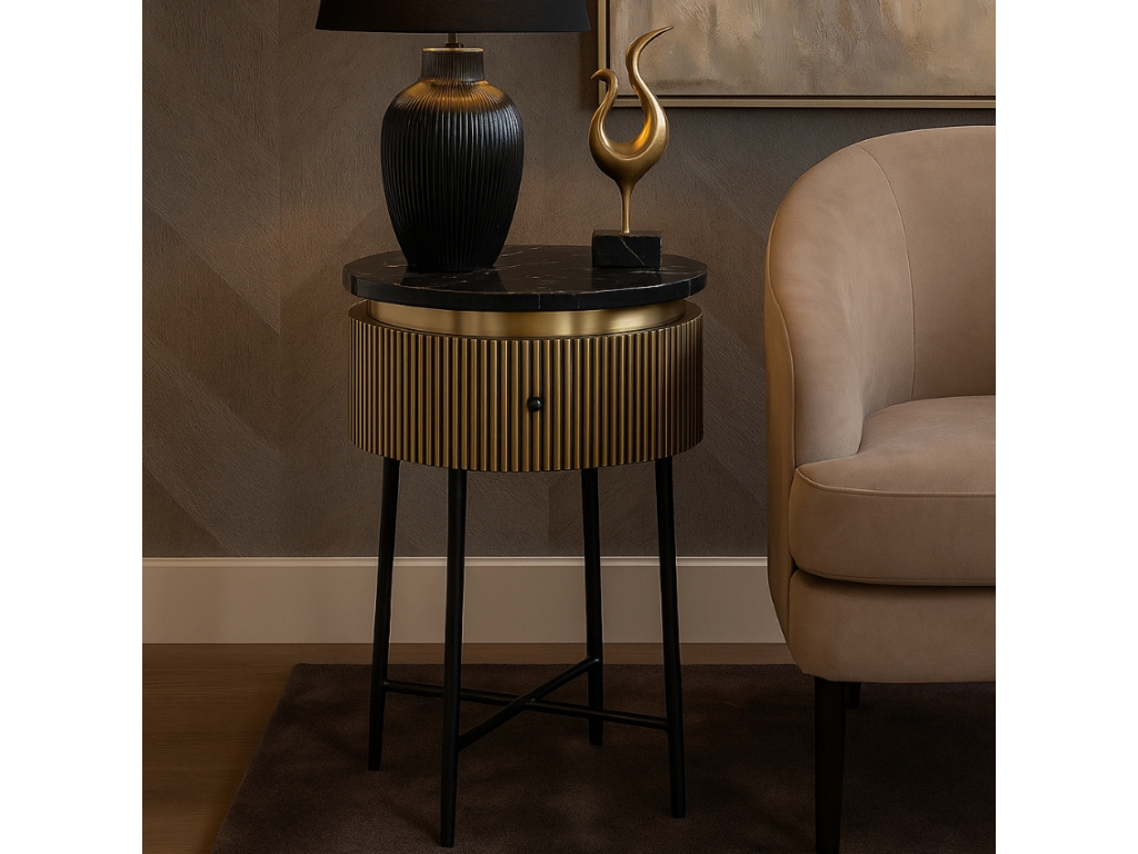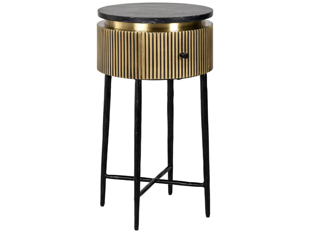 Dodejte svému obytnému prostoru industriální nádech s odkládacím stolkem z produktové série Ironville od značky Richmond. Tento robustní a stylový odkládací stolek se vyznačuje pevnou kovovou konstrukcí a minimalistickým designem, který bez námahy doplňuje různé styly dekorací. Odkládací stolek Ironville je dokonalou kombinací tvaru a funkce, poskytuje praktický povrch pro vaše nezbytnosti a zároveň zvyšuje celkovou estetiku vašeho pokoje. Za zmínku stojí také praktická zásuvka, kam můžete schovat předměty, které není třeba mít na očích. Stolek bezpochyby zaujme pozornost kohokoliv, kdo k vám vkročí na návštěvu.