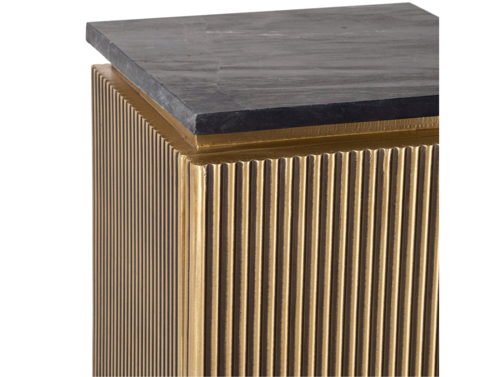 Představujeme vám stylový odkládací podstavec z produktové série Ironville od značky Richmond. Podstavec je inspirovaný industriálními prvky, díky čemuž bude ladit ve většině industriálních interiérů. Jeho deska je vyrobena z kvalitního černého mramoru, který poskytuje dlouhou životnost a vysokou odolnost vůči mechanickému poškození. Podstavec navíc disponuje úložným prostorem v podobě 3 polic, ukrytých za nenápadnými dvířky. Ať už se rozhodnete ho využít jako samostatný akcent interiéru nebo jako součást vybraného dekoračního aranžmá, přinese do vašeho domova dotek elegance a sofistikovanosti.