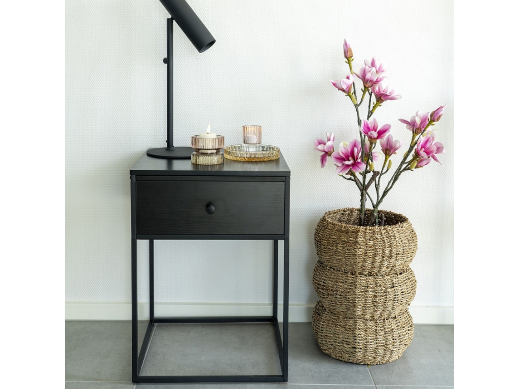 Moderní odkládací stolek Aphas dodá vašemu domovu na originalitě a jedinečnosti. Aphas má velmi zajímavě řešenou podnož, která je specifická kovovým provedením. Stolek navíc disponuje praktickou zásuvkou, do které se pohodlně vejde například kniha nebo časopisy. Stolek lze využít také jako noční stolek k posteli. Aphas se hodí především do industriálně laděných interiérů.