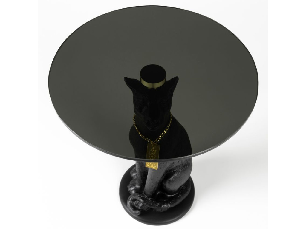 To chciČerný odkládací stolek Bold Monkey Proudly Crowned Panther 40 cm se skleněnou deskou