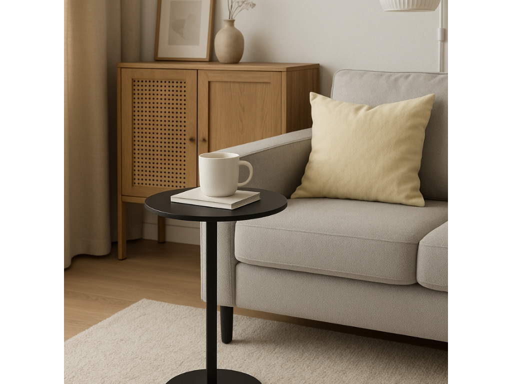 Odkládací stolek Namib od značky MICADONI spojuje minimalistickou eleganci se skandinávským stylem a maximální funkčností. Jeho štíhlá silueta a nadčasový design skvěle zapadnou do moderních i klasických interiérů. Kovová podnož s černým lakováním zajišťuje stabilitu a umožňuje pohodlné umístění vedle pohovky či křesla. Kompaktní rozměry a lehká konstrukce dodávají stolku všestrannost a snadnou manipulaci. Hodí se jako odkládací stolek do obývacího pokoje, pracovny či ložnice. Dodejte svému domovu styl a praktičnost s konferenčním stolkem Namib!