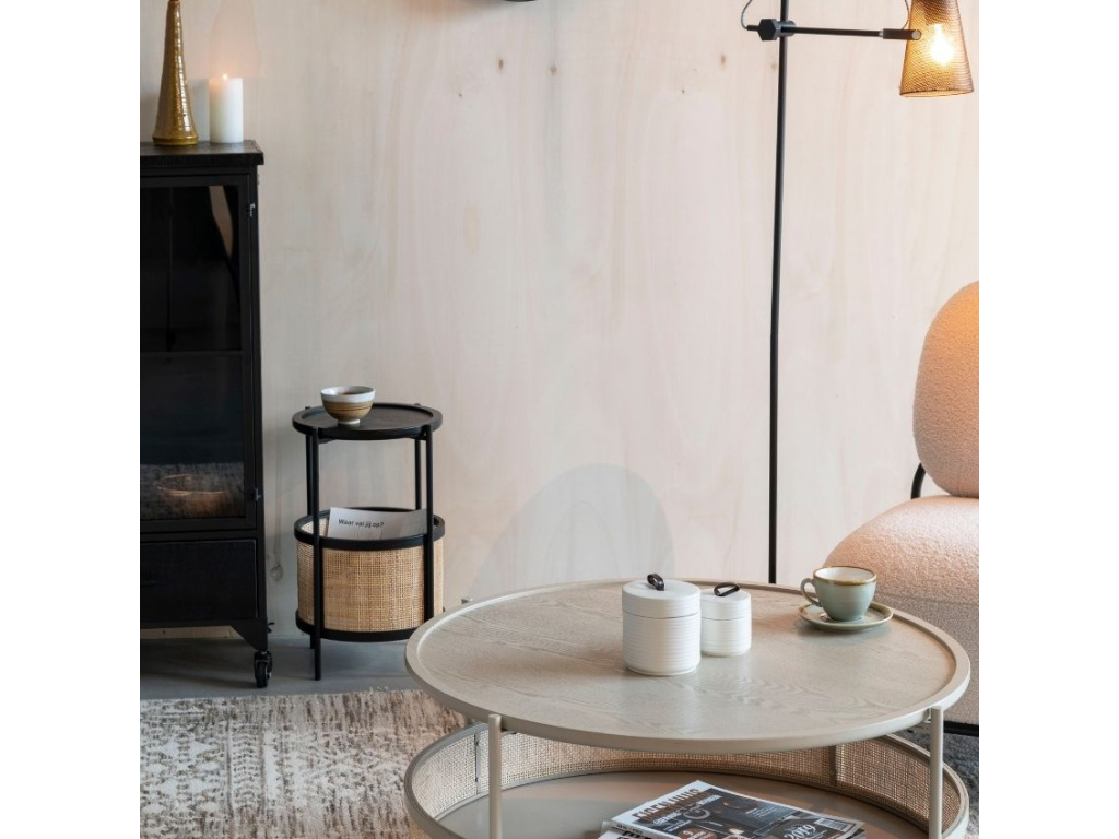 Kulatý odkládací stolek MAKOTO značky WHITE LABEL LIVING zaujme svým originálním designem - jeho podnož je ozvláštněna výpletem z přírodního ratanu. Ten zároveň slouží jako ohraničení spodní desky stolku, takže vám stolek poskytne praktický úložný prostor na časopisy, ovladače a jiné drobnosti. Stolek je dostupný také v pískově hnědém barevném provedení.