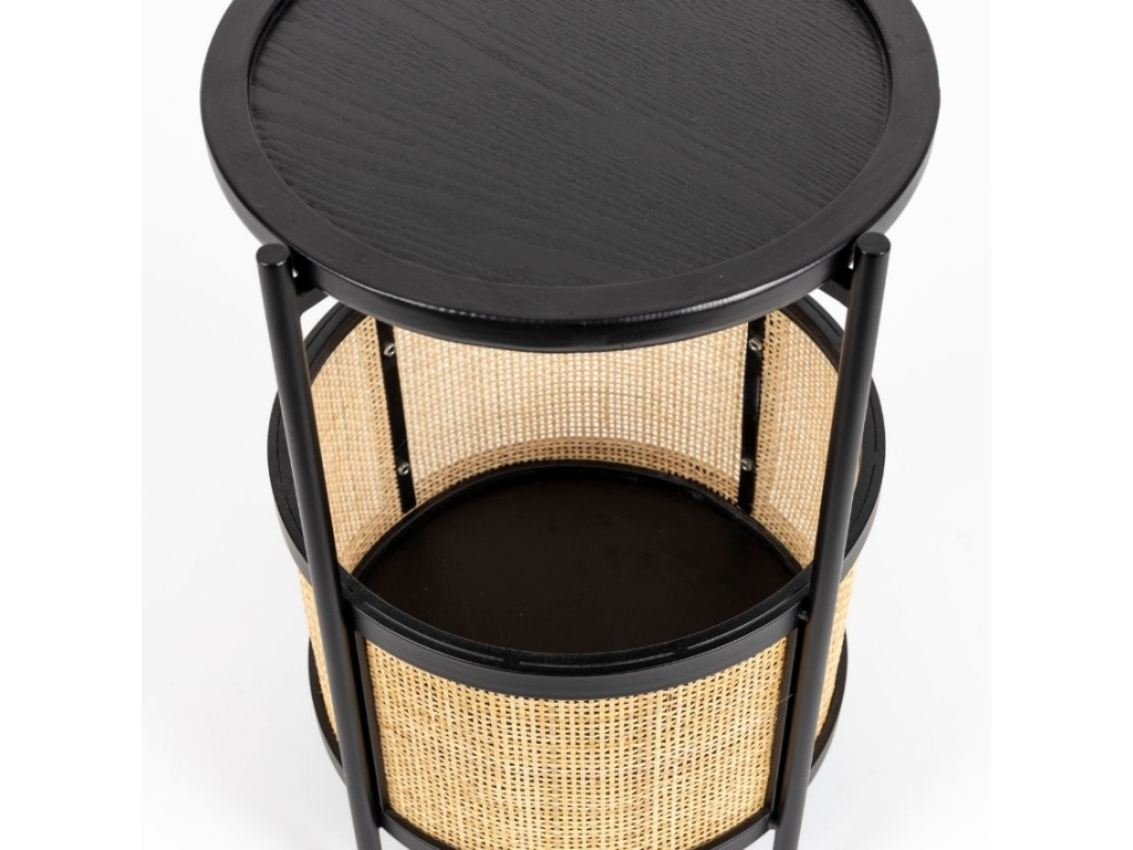 To chciČerný odkládací stolek WLL MAKOTO s ratanovým výpletem 30 cm