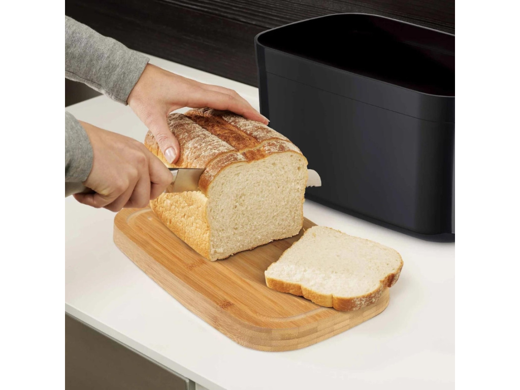 ProhlédnoutČerný plastový chlebník s prkénkem Bread Bin