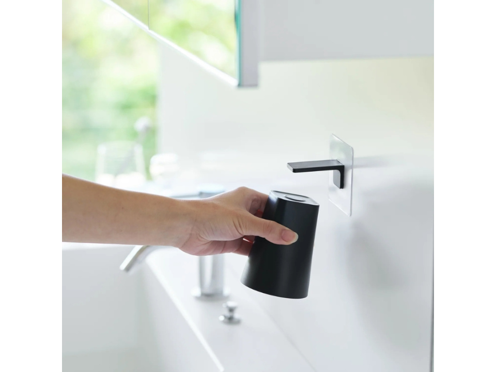 Minimalistický, ale promyšlený do posledního detailu. Držák s kelímkem Film Hook od značky Yamazaki je ideální volbou pro každého, kdo chce udržet koupelnu čistou, přehlednou a bez zbytečností na umyvadle. Montáž je neuvěřitelně jednoduchá a bez nutnosti vrtání. Pomocí samolepicí fólie držák snadno připevníte na hladké, neporézní povrchy jako jsou dlaždice, zrcadla nebo sklo. Kelímek se přichytí pomocí magnetu, takže ho kdykoli snadno sejmete a zase vrátíte zpět. Film Hook je nenápadný pomocník, který v koupelně udělá víc, než čekáte – a brzy si bez něj ranní rutinu nebudete umět představit.