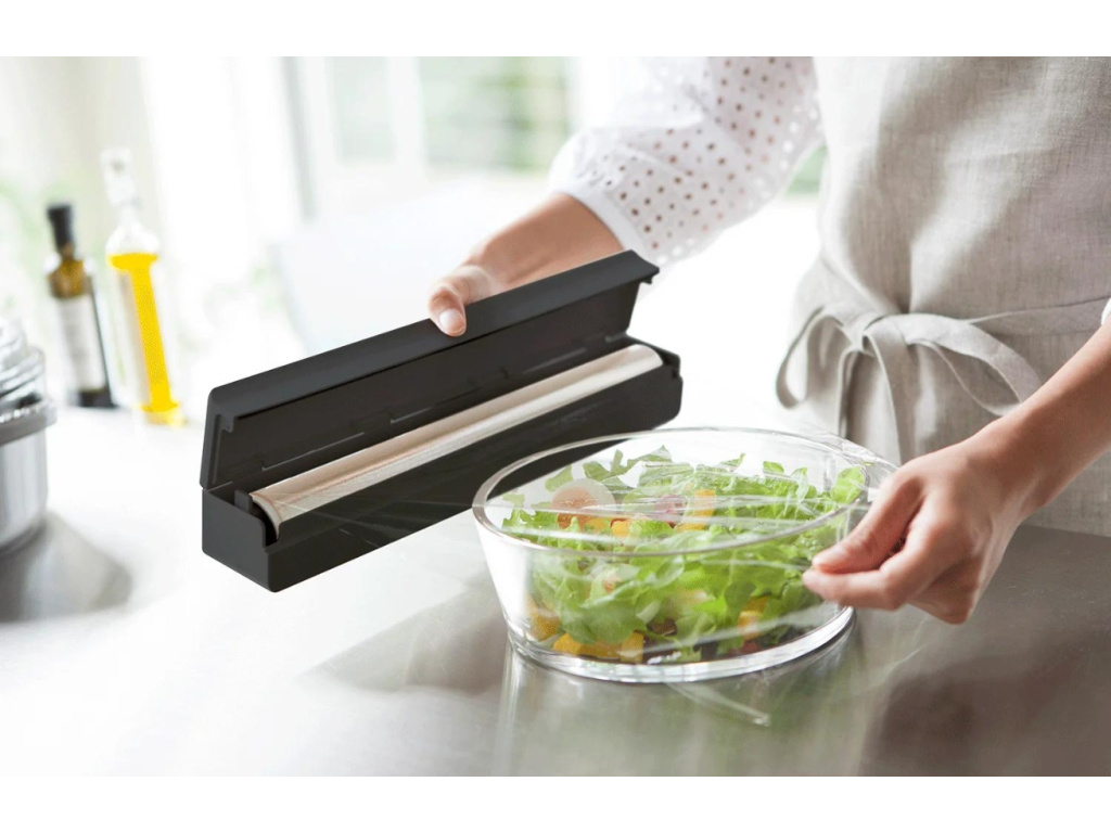 Magnetický držák na kuchyňské fólie Tower od značky Yamazaki je elegantní a praktický doplněk do každé kuchyně. Tower je vyroben z ABS plastu, což zajišťuje jeho lehkost a odolnost. Magnet na zadní straně držáku umožňuje jeho snadné připevnění na jakýkoli kovový povrch, například na lednici, mikrovlnnou troubu nebo kovovou skříňku. I když je primárně určen pro kuchyňské fólie, držák může být použit i na jiné role, například na pečící papír nebo alobal. Tower je perfektní volbou pro ty, kteří hledají stylové a funkční řešení pro svou kuchyň. Vybírat u nás můžete ze dvou variant – držák je dostupný v bílé i černé variantě.