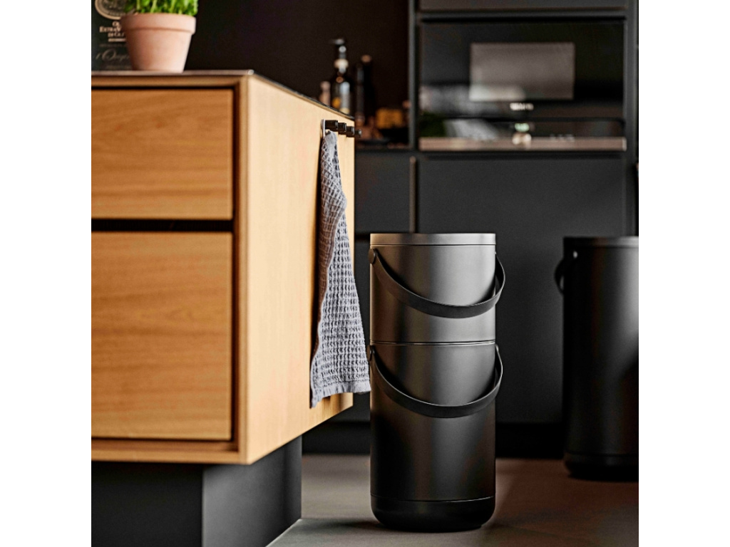 Kolekce Circular od značky Zone Denmark představuje elegantní a funkční řešení pro třídění odpadu, navržené tak, aby koše nemusely být skryty v koutě či pod dřezem, ale mohly být součástí jednolitého designu dané místnosti. Tento koš se skládá ze 2 samostatných nádob, které do sebe dokonale pasují, díky čemuž nemusíte dělat kompromisy s tříděným odpadem i v malých místnostech. Horní nádobu lze využívat např. na bio odpad a spodní na směsný odpad nebo plasty. Samozřejmostí jsou i praktická držadla, tiché zavírání a diskrétní systém pro upevnění sáčků. Design kolekce, oceněný prestižní cenou German Design Award, je dílem studia VE2 a je dostupný ve dvou barvách.