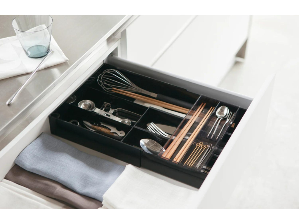 Organizér na příbory Tower od značky Yamazaki je ideální volbou pro každého, kdo chce efektivně využít prostor v kuchyňské zásuvce a zároveň udržet příbory přehledně a snadno dostupné. Tower je vyroben ze zdravotně nezávadného ABS plastu. Jednou z hlavních výhod tohoto organizéru je jeho schopnost přizpůsobit se délce zásuvky. Tento praktický doplněk přinese do vaší kuchyně pořádek a eleganci. Vybírat u nás můžete ze dvou variant – organizér je dostupný v bílé i černé barvě.