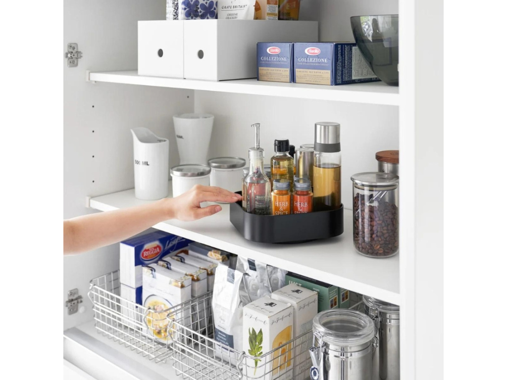 Černý plastový otočný úložný organizér Yamazaki Tower 20 cm